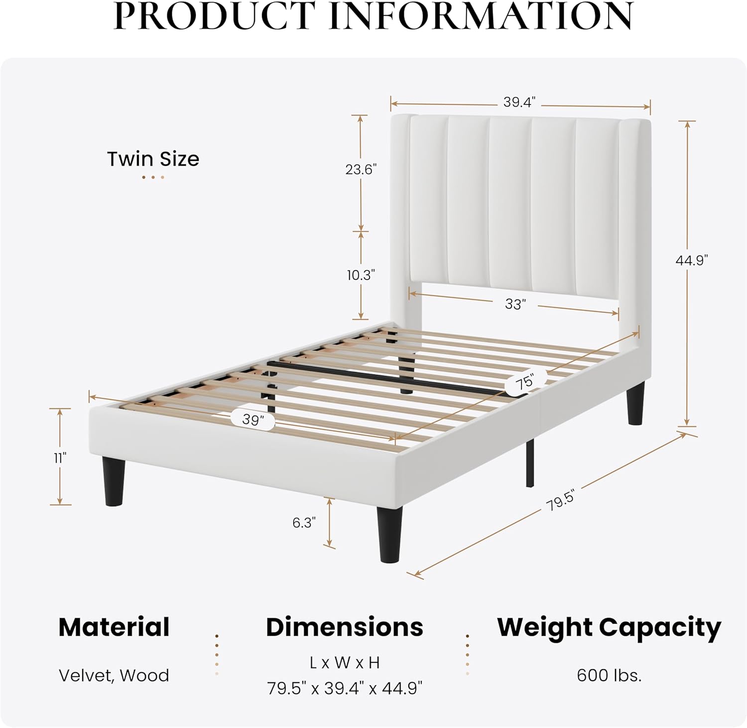 - Material Velvet : Maximum Weight Recommendation 600 Pounds