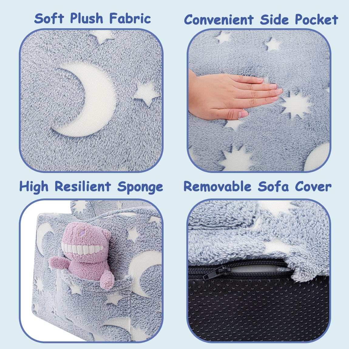 - Versatile Design: The pleasing luminous design adds a touch of magic, and comes with a blanket, making it one of the most exciting folding couches for toddlers, as well as an easier way to fall asleep