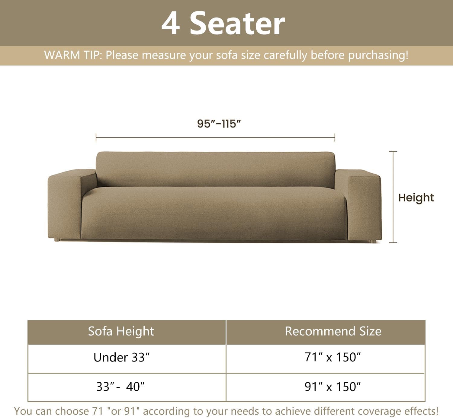 - Product Size: We offer a variety of sizes for you to choose from,Medium Size (71"x91",71"x102") for loveseat sofa futon chair,Large Size (71"x118", 91"x118") for 2-3 seats,X-Large Size (71"x134", 91"x134") for 3 seats, XX-Large Size (91"x150") for 4 seats, choose the right size according to the actual sofa size. You can choose 71" or 91" according to your needs to achieve different coverage effects!