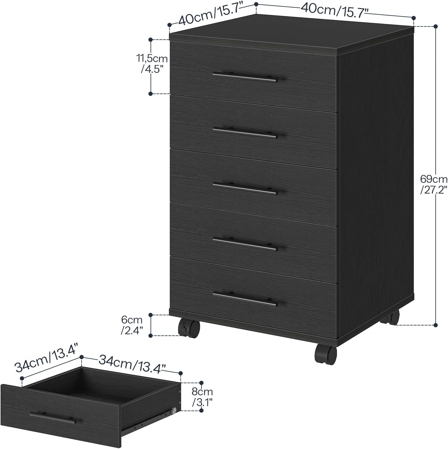 HOOBRO 5-Drawer File Cabinet, Office Cabinet with Drawers, Wooden Storage Cabinet with Wheels for Makeup, Home Office, Study, Easy Assembly, Black BK05WJ01