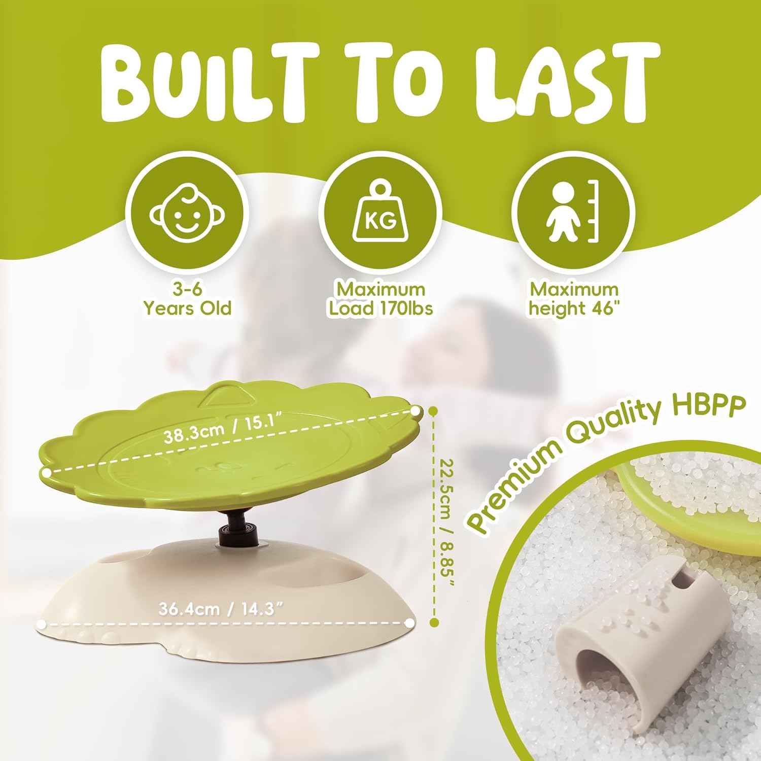 Spinning Chair for Autistic Kids, Autism Sensory Spinning Chairs Sensory Swivel Chair, Sensory Toy for ADHD & Autism 3-6 Years Children, Sit and Spin Training Body Coordination (Green)