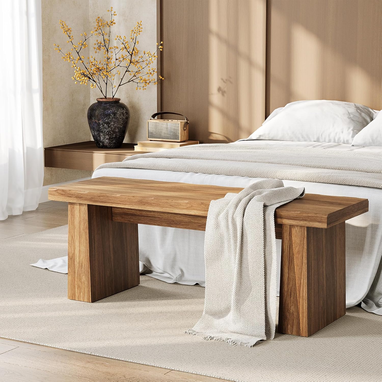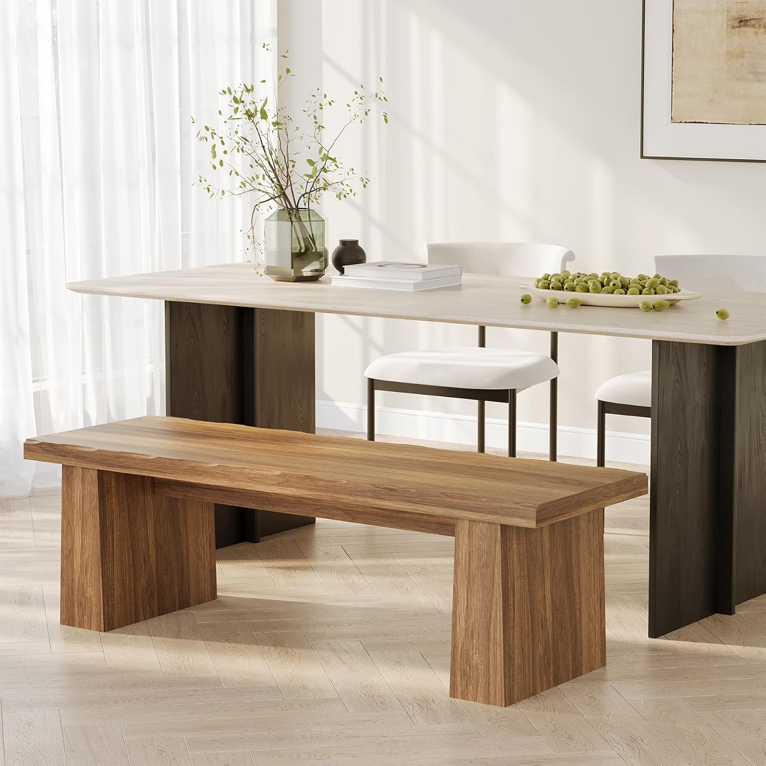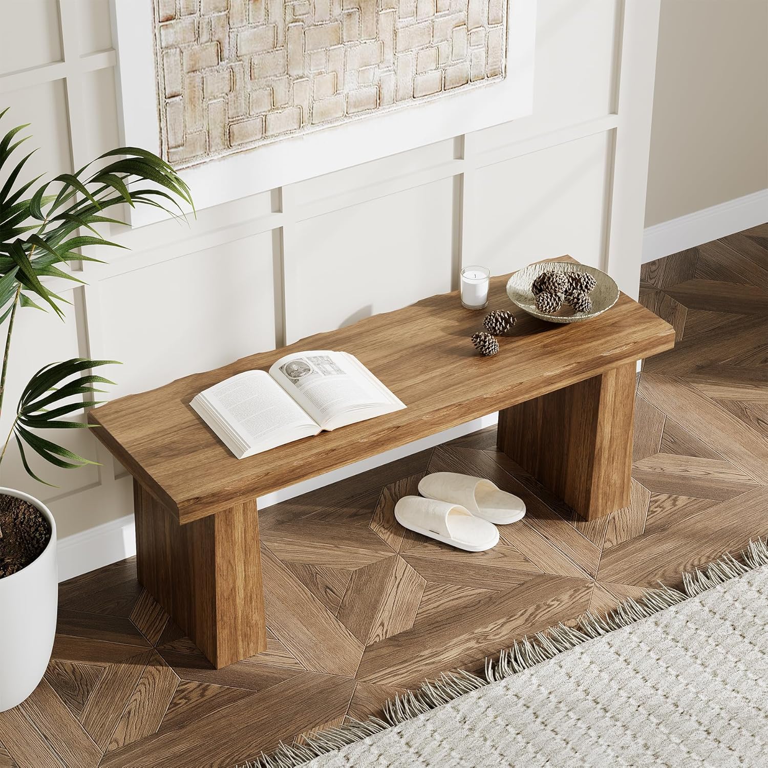 LITTLE TREE 47-Inch Wooden Entryway Bench, Farmhouse Dining Bench with Sturdy Frame for Dining Room, Bedroom, Living Room Hallway Kitchen, Easy Assembly (Walnut)