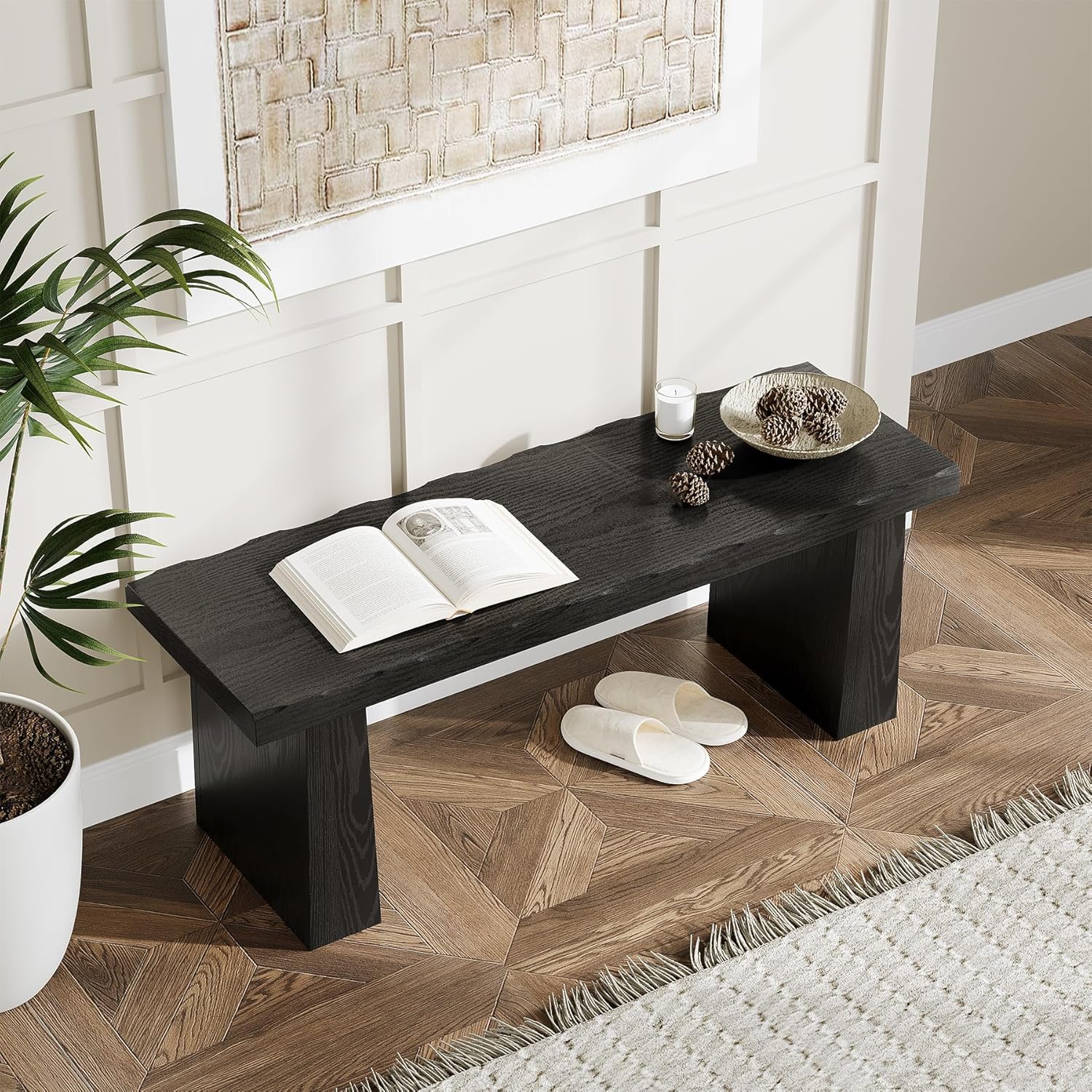 LITTLE TREE 47-Inch Wooden Entryway Bench, Farmhouse Dining Bench with Sturdy Frame for Dining Room, Bedroom, Living Room Hallway Kitchen, Easy Assembly (Black)