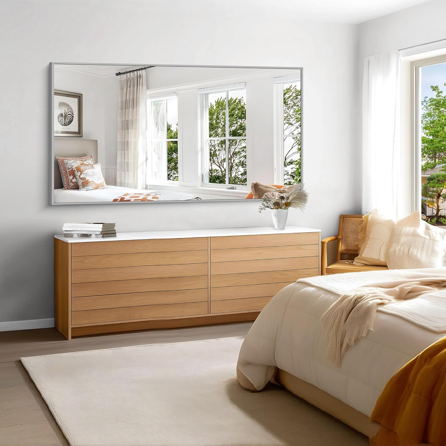 KOCUUY Large Silver Bathroom Mirror, 60x30 inch Rectangular Mirror for Bathroom Sink, Oversized Mirror with Metal Brushed Nickel Frame for Living Room, Farmhouse, Entryway, Hang Horizontal/Vertical