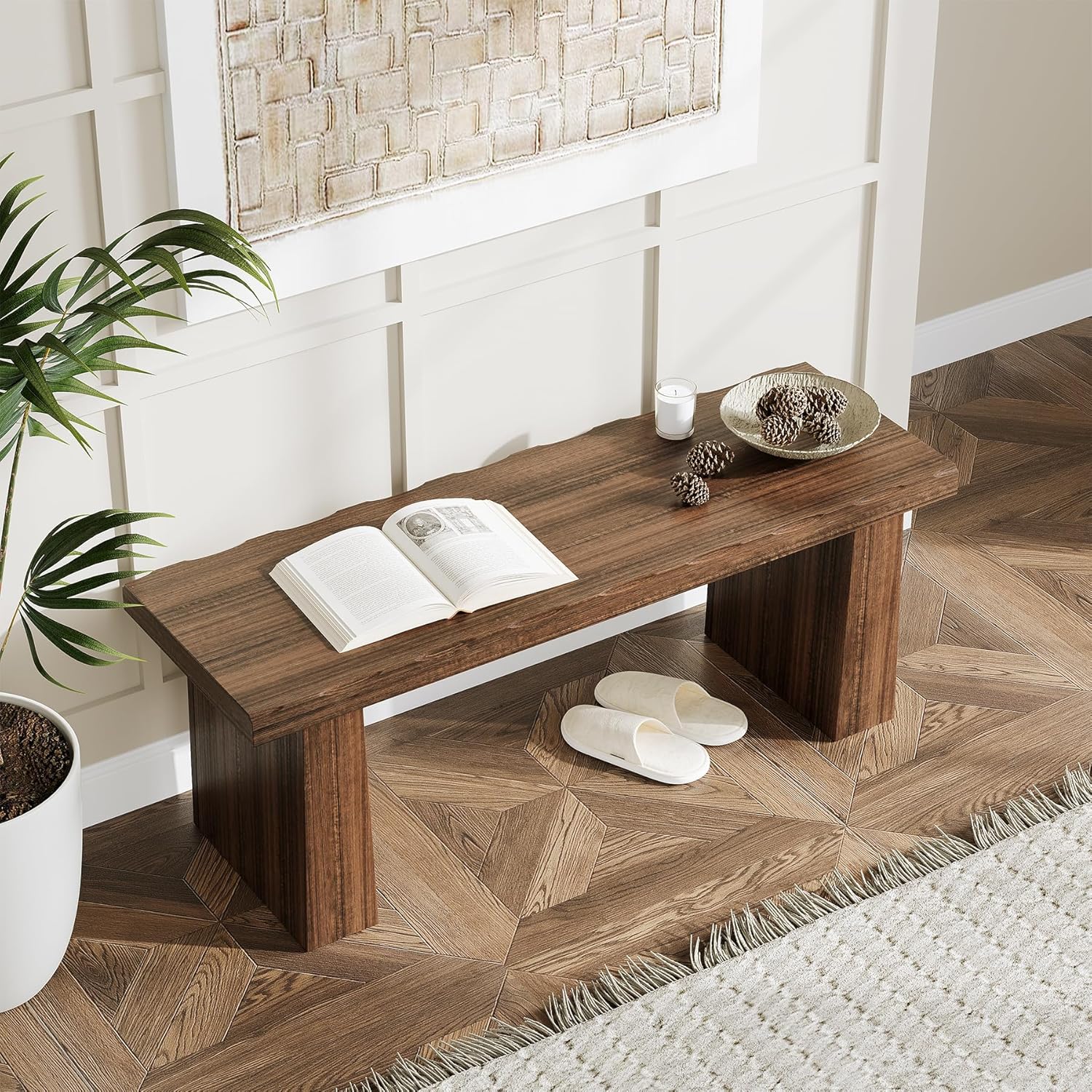 - Unique Design: This wooden entryway bench features a modern, simple design with a wavy edge shape, exuding an air of elegance and sophistication to embellish your dining room, living room, bedroom, or hallway