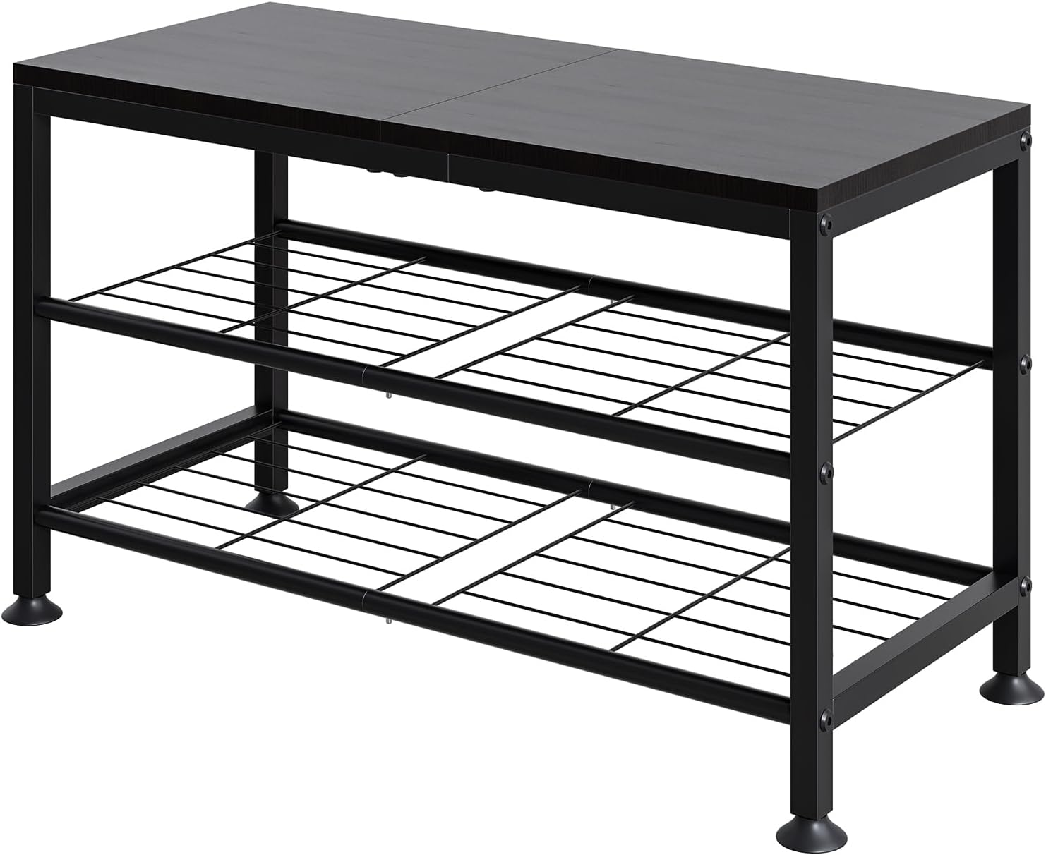3-Tier Shoe Rack Bench - Entryway Organizer with Shoe Storage, Sturdy Shoe Shelf for Front Door, Small Space Saving Furniture, Black, Holds 286lbs,27.2" x 12.0" x 15.9"