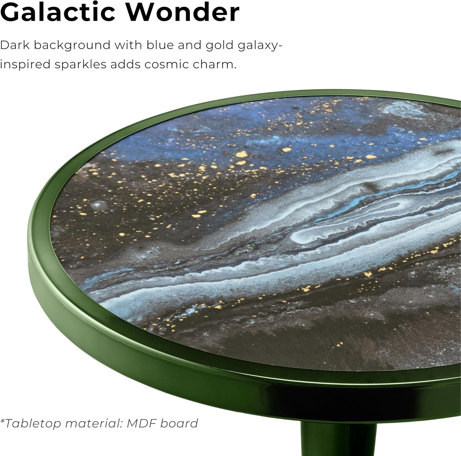- 🌌MYSTERIOUS TABLETOP DESIGN: Lacquer tabletop in grey galaxy-inspired pattern with blue and gold sparkles evokes cosmic charm.