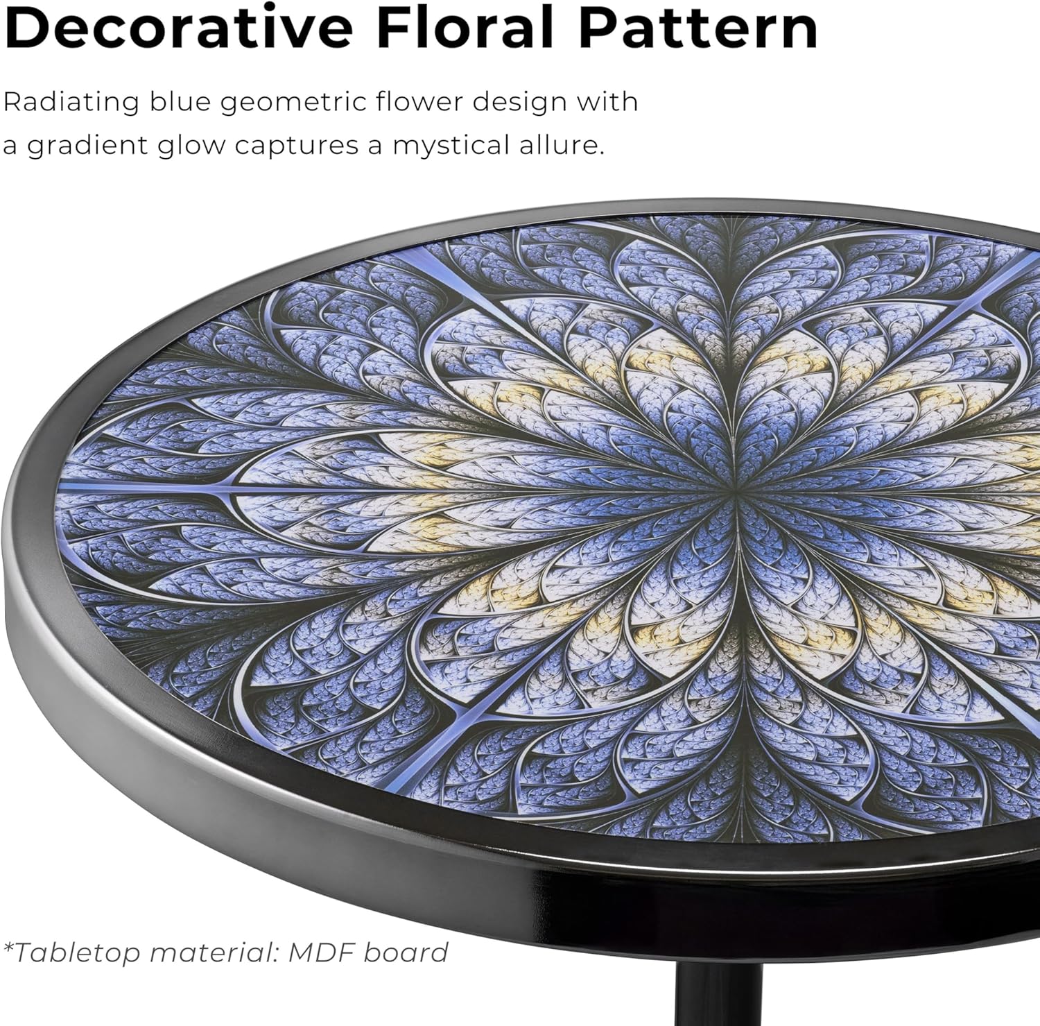HOMES: Inside + Out Halric Modern 24" Tall Round End Table with Printed Tabletop and Iron Metal Base, Accent Furniture, Pedestal Stand for Living Room, Home Office, Black with Geometric Floral