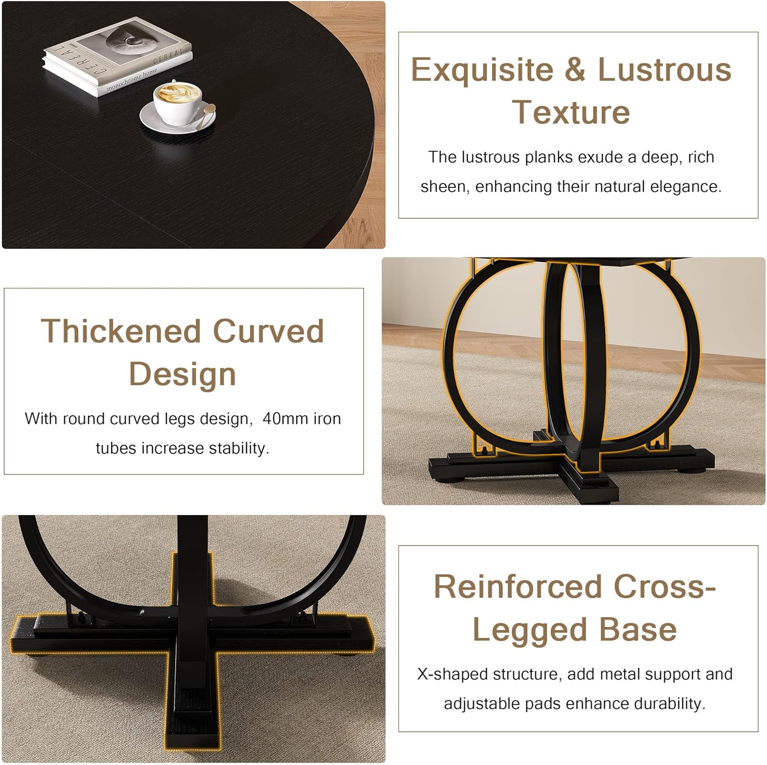 59" Round Extendable Dining Table for 4-6, Modern Oval Kitchen Table with Heavy Duty Curved Legs & Wood X-Based, MDF Board with Spring Buckle, Space Saving, Dining Kitchen Living Room, Black
