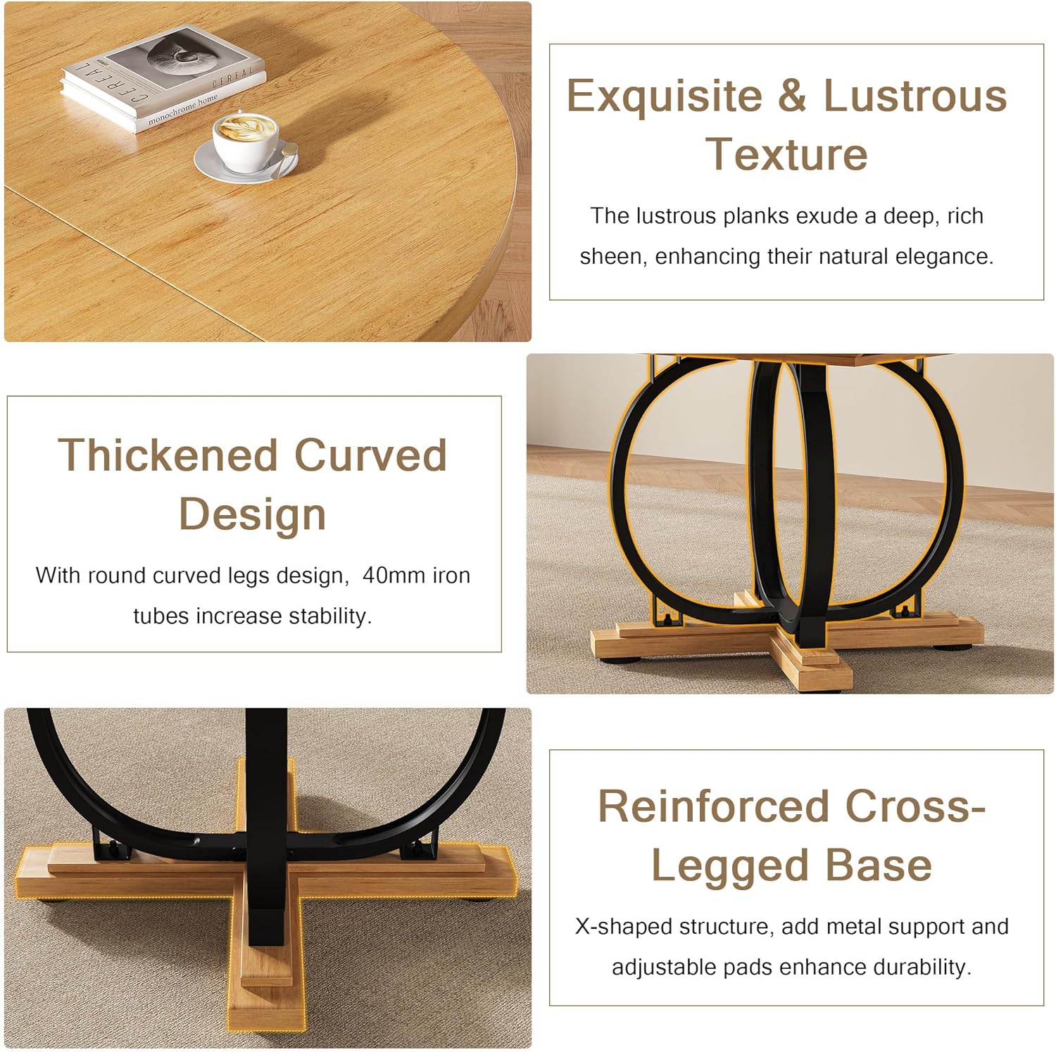 59" Round Extendable Dining Table for 4-6, Modern Oval Kitchen Table with Heavy Duty Curved Legs & Wood X-Based, MDF Board with Spring Buckle, Space Saving, Dining Kitchen Living Room, Oak