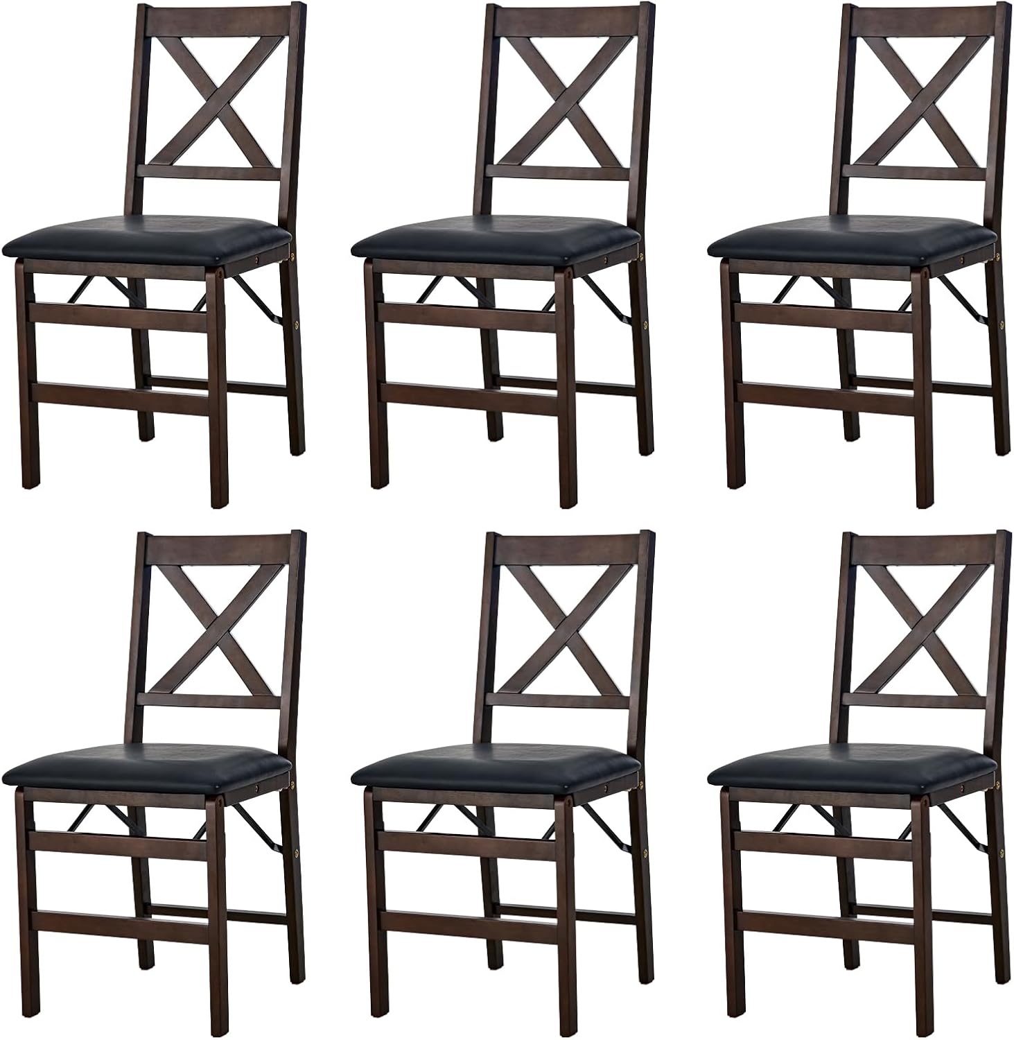 COLAMY Folding Dining Chairs Set of 6, Foldable Chairs with Padded Seats, Wood Folding Dining Room Chairs for Kitchen, Party, Camping, Dark Brown