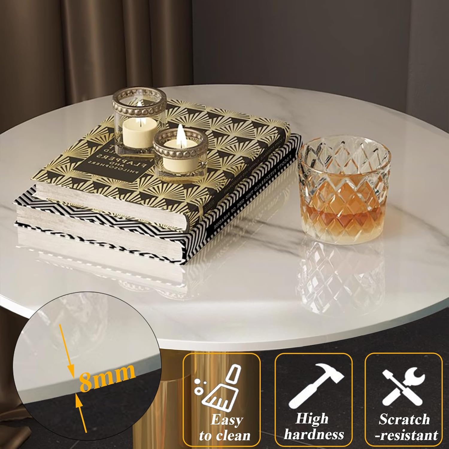 - 【Premium Materials & Built to Last】Crafted with scratch-resistant faux-marble tabletops, heatproof and stain-resistant for daily wear. The mirror-polished stainless steel frame exudes luxury, while the 8mm-thick tabletop and 5mm base ensure long-lasting durability. Easy to clean with just a damp cloth, maintaining its refined look effortlessly