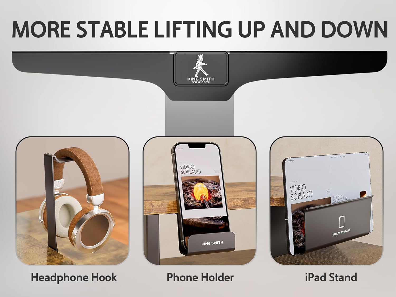 - Ideal Computer Workstation: Designed with many thoughtful storage ideas, such as 1 fabric drawer, 1 phone holder, 1 ipad stand, 1 headphone hook and 2 bag hooks, WALKINGDESK height adjustable desk creats a perfect working room for every home office worker.