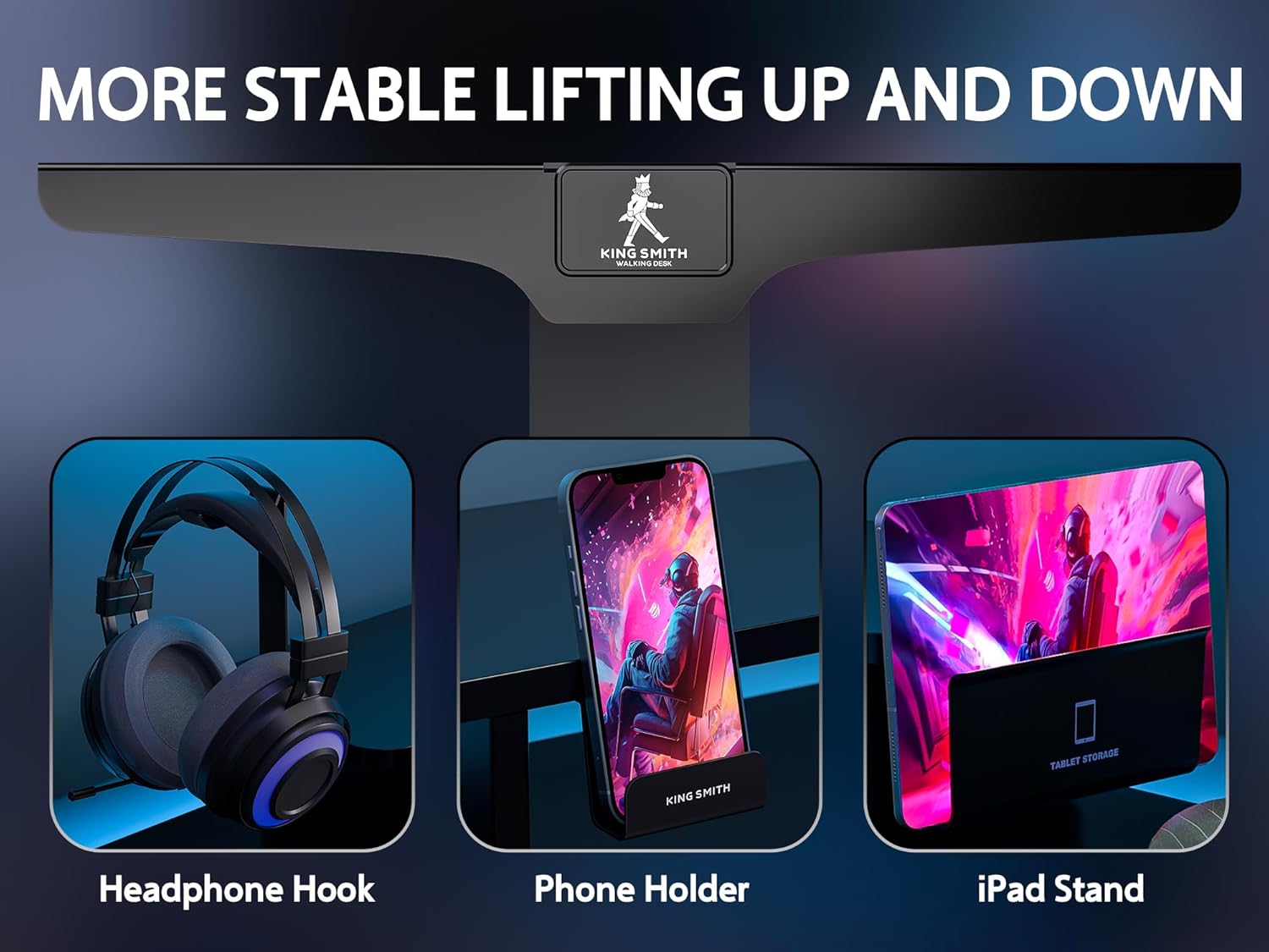 - Ideal Computer Workstation: Designed with many thoughtful storage ideas, such as 1 fabric drawer, 1 phone holder, 1 ipad stand, 1 headphone hook and 2 bag hooks, WALKINGDESK height adjustable desk creats a perfect working room for every home office worker.