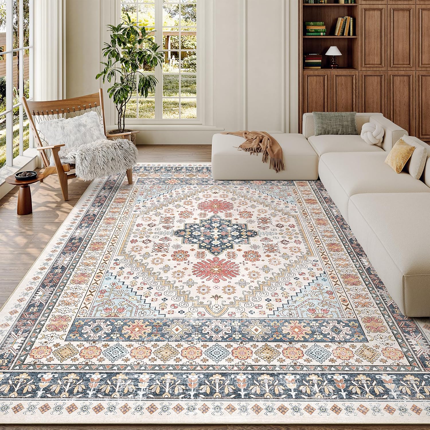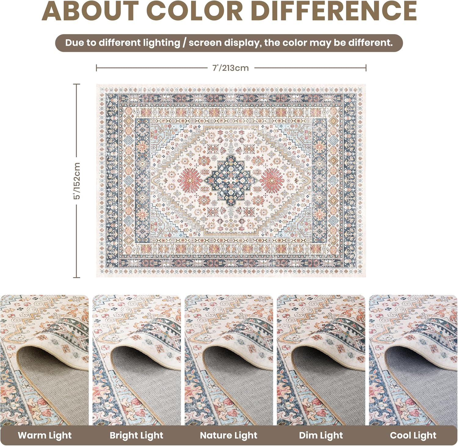 zesthome 5x7 Area Rugs - Ultra-Thin Washble Rug, Stain Resistant Anti Slip Backing Rugs for Living Room,Bedroom, Vintage Home Decor Area Rug (Multi,5'x7')