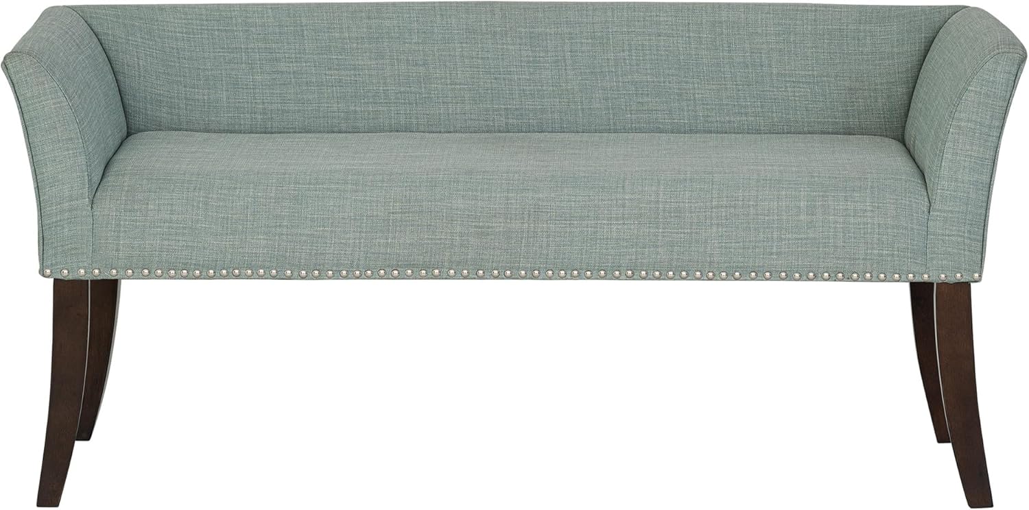 Madison Park Accent Bench for Living Room, Upholstered with Nailhead Trim, & Padded Seat Entryway Bench Small, End of Bed Bench with Back, 49.5" W x 19.25" D x 23" H, Light Blue