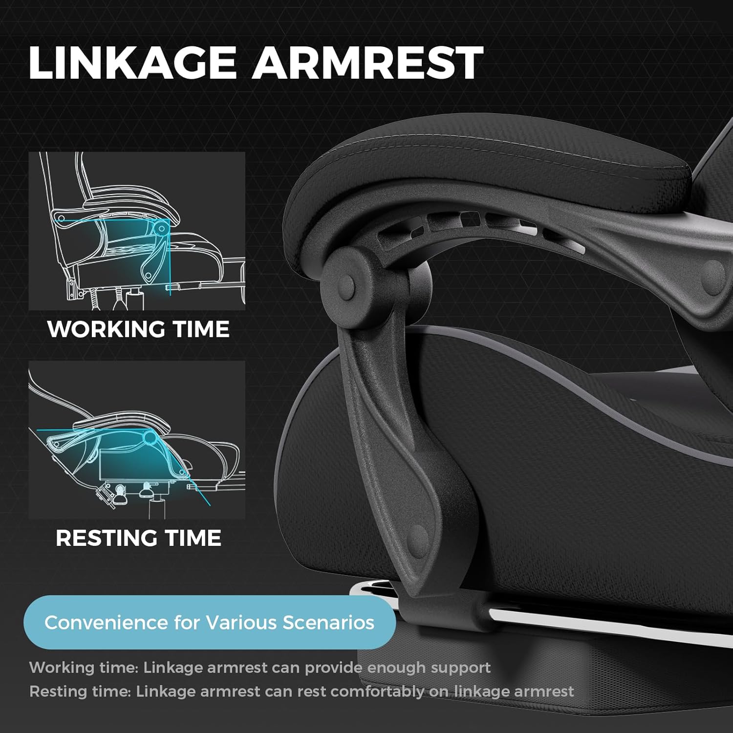 GTPLAYER Gaming Chair, Computer Chair with Footrest and Lumbar Support, Height Adjustable Game Chair with 360°-Swivel Seat and Headrest and for Office or Gaming (Darkgray, Fabric)