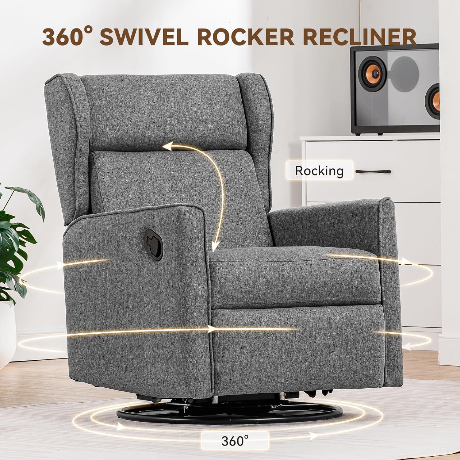 - 【Swivel Recliner Chair】Our rocking recliner chair has a sturdy metal base that can easily support 360-degree rotation and mobility.Whether you are video calling with friends,watching TV or just working,you can turn to any direction effortlessly,it can provide you with freedom and convenience
