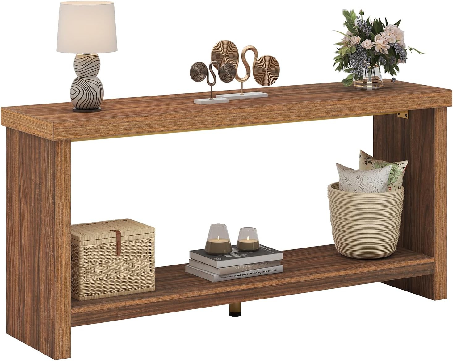 - Stylish Storage & Display: This 63-inch long console table (63''L×11.81''D×29.53''H) features a smart dual-tier design that maximizes vertical space. The upper level perfectly displays decor, plants or lamps, while the lower shelf neatly organizes books and remotes - solving both your living room storage and aesthetic needs while effortlessly elevating your home's style.