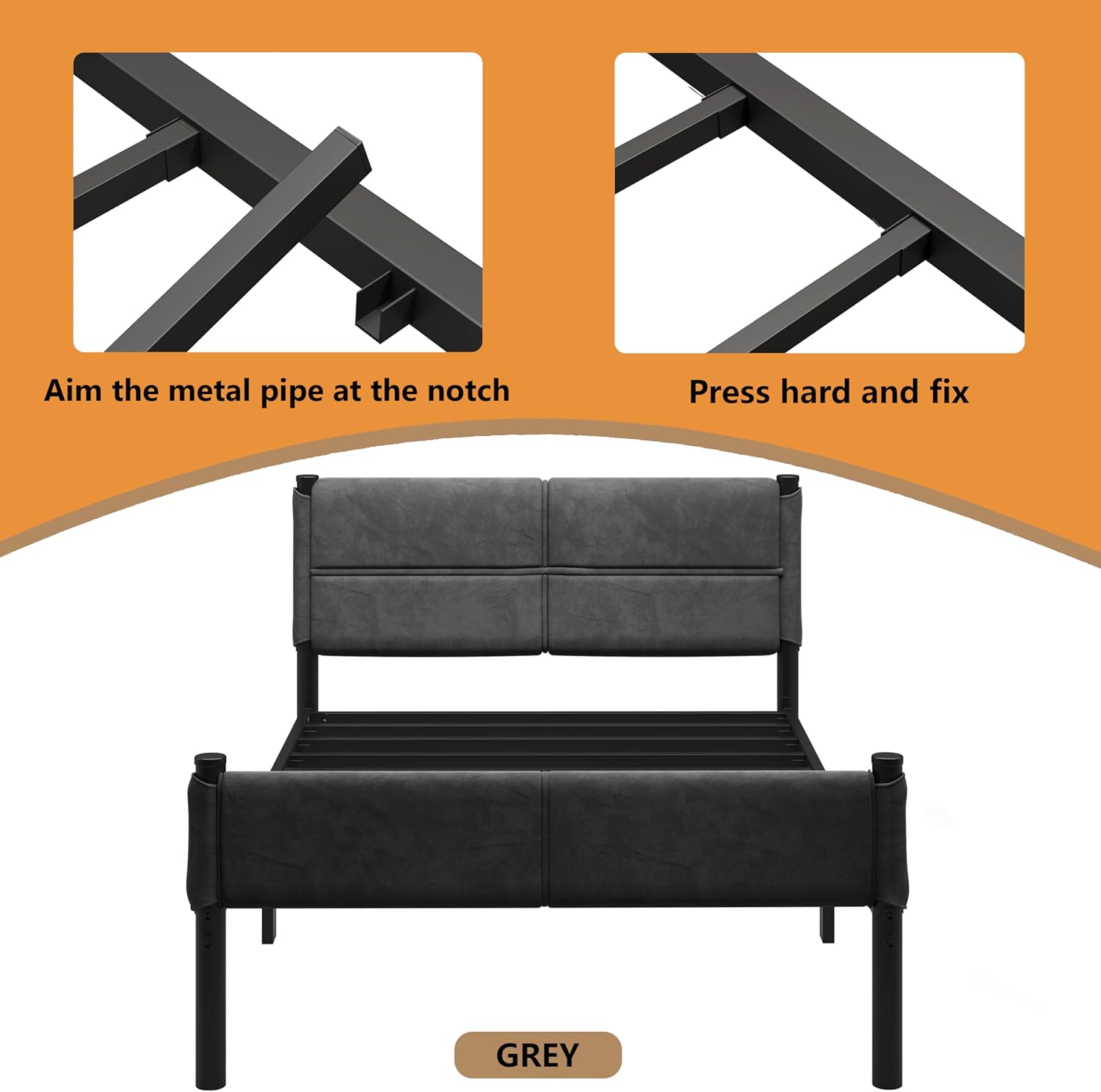 - Heavy-Duty Frame:This bed frame is made from thick metal pipes, providing reinforced stability and strength.