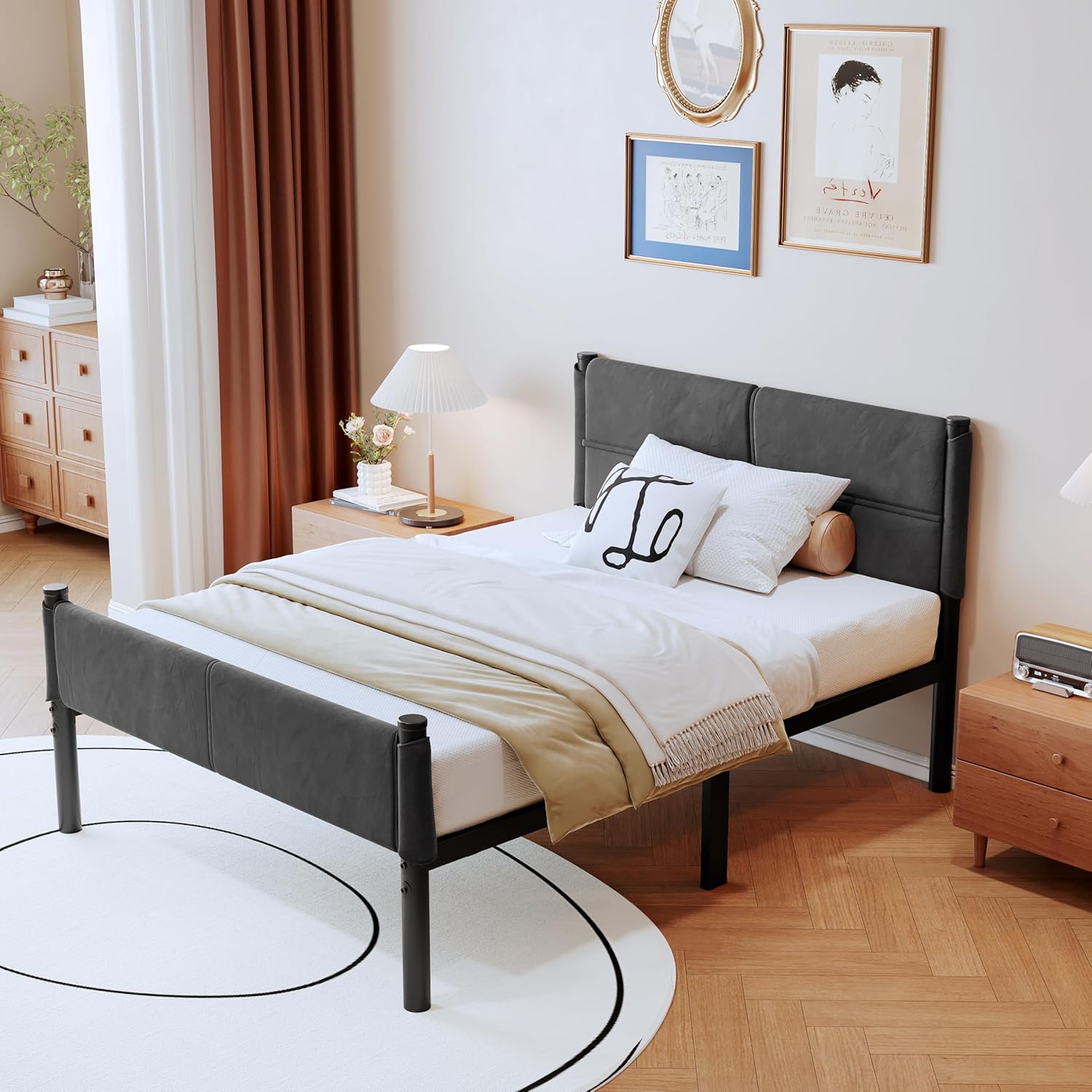- Minimalist and Modern:This bed frame is made of metal, offering a simple and clean design.