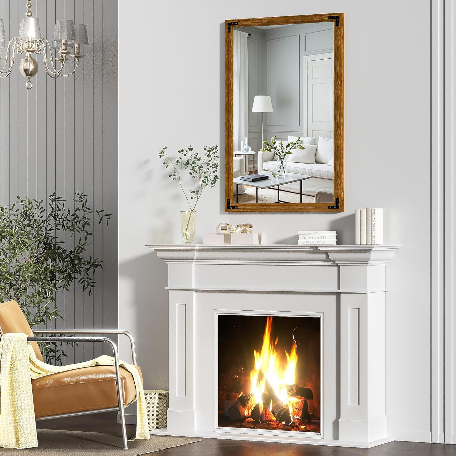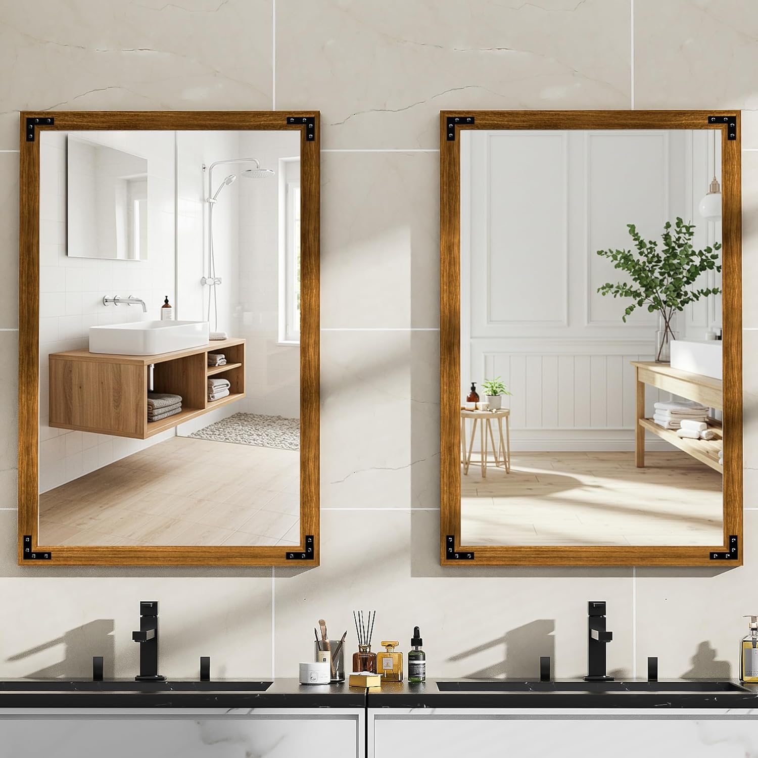 - Stylish Wood Frame: Featuring unique wood grain textures, this mirror enhances the farmhouse aesthetic, adding a touch of rustic charm to any space.