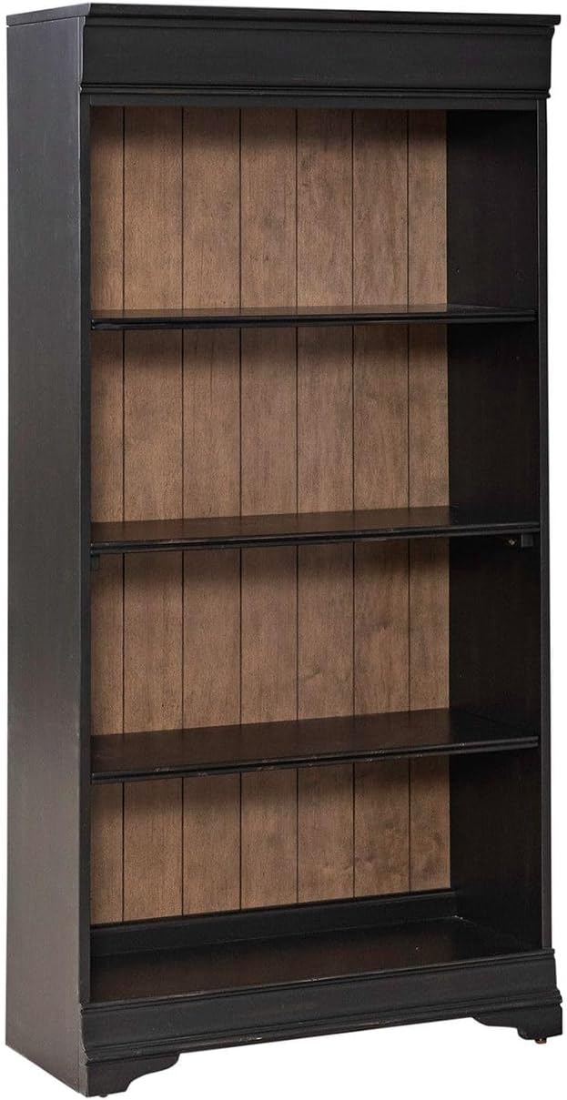 Liberty Furniture Meritage 60 Inch Bookcase for Home Office - Aged Charcoal w/Rub Thru & Caramel
