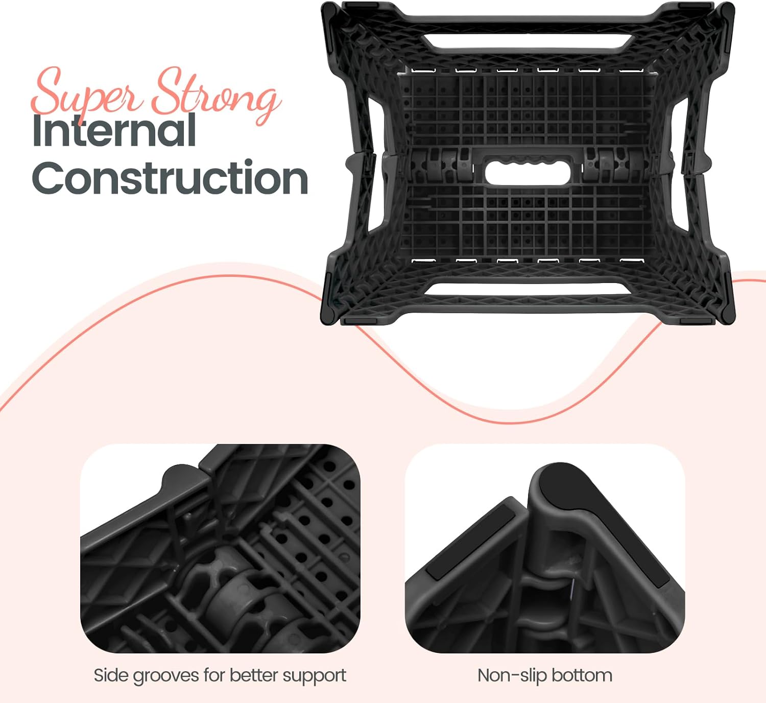 - Upgrade Dotted Texture: Unique Embossing design increases the stability of the black folding stool and provides Comfortable to sit on and Non-Slip.Features improved the folding bar which can prevent from collapse inward while standing on it
