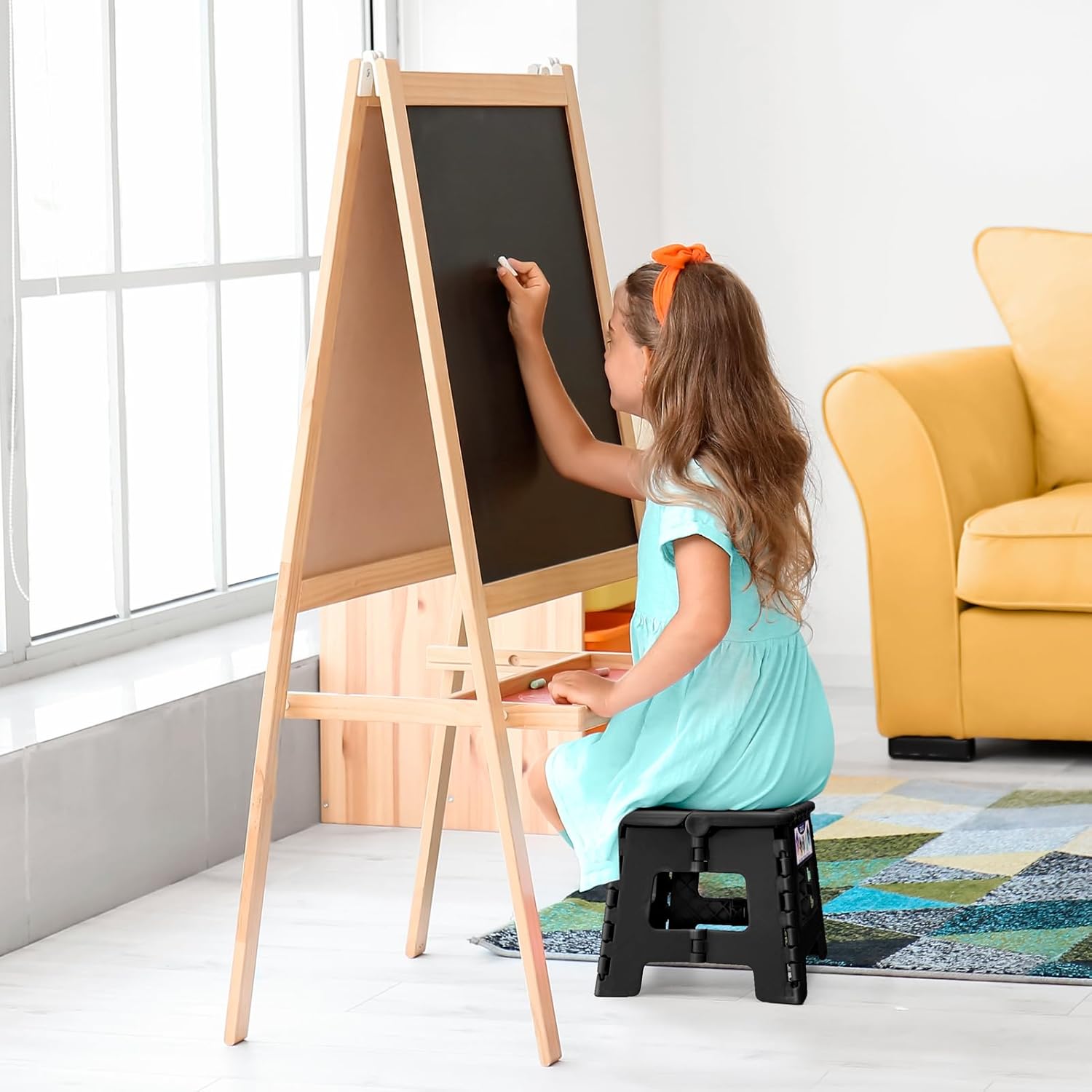 Delxo Folding Step Stool 9 Inch Non-Slip Foldable Stools Up to 300 LBS Kitchen Collapsible Fold Up Stepping Stool with Dotted 1 Pack Black