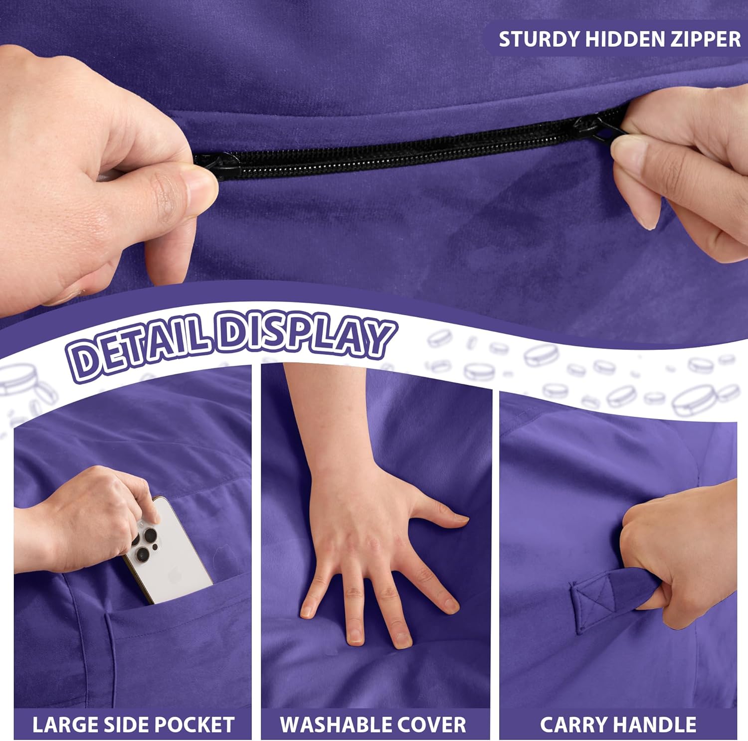 - Removable and Washable Cover: Our luxury velvet ultra-soft fur cover is removable and washable so you can always keep it clean and smelling fresh. If the bean bag chair cover is stained, you can simply zipper off the zipper easily and wash the chair cover.