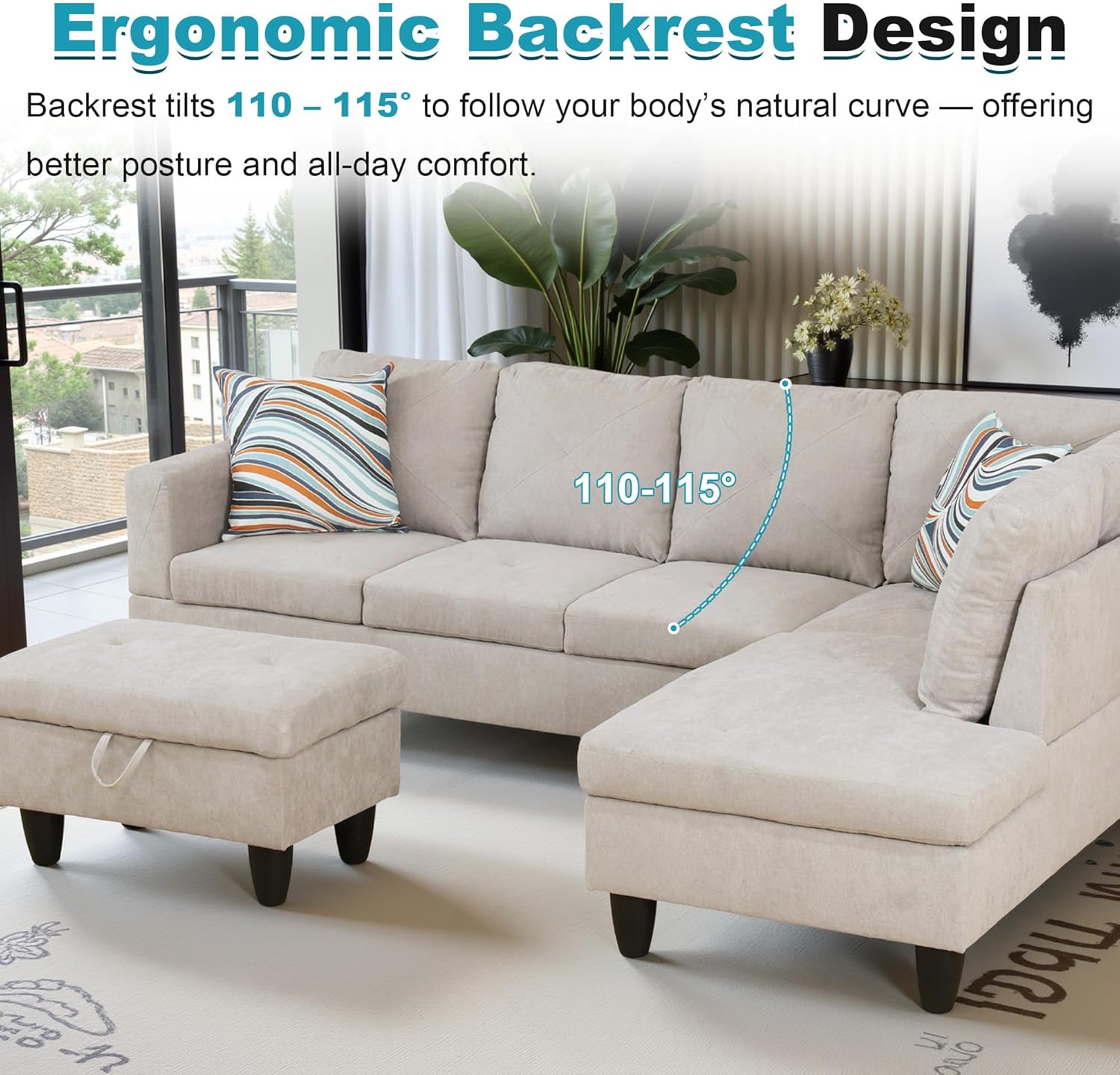 - Functional Storage Ottoman: The included ottoman offers hidden storage space—ideal for blankets, remotes, or magazines—adding practicality to your modular sectional sofa layout while keeping your space tidy and stylish.