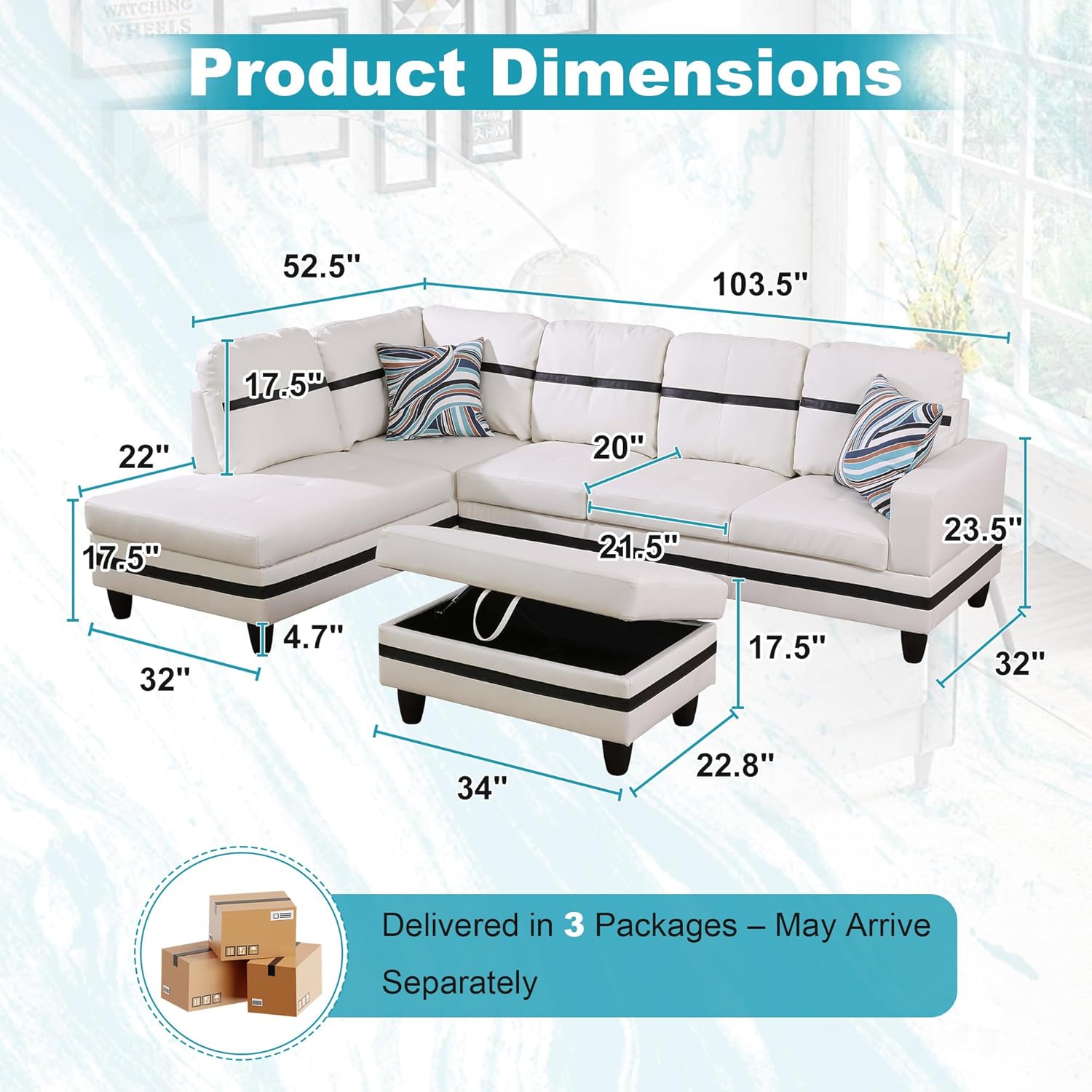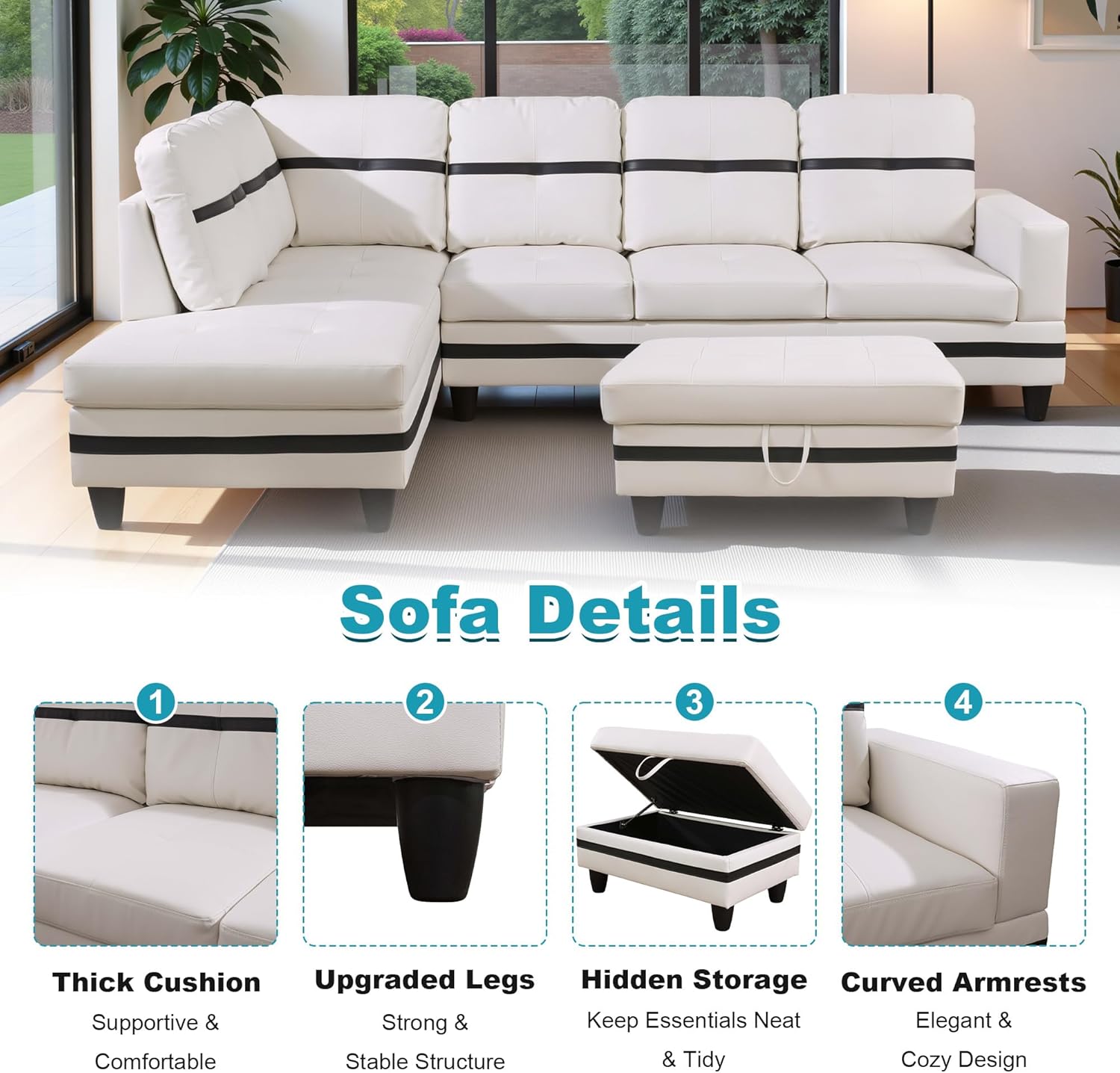 103.5" Oversized Sectional Couch, L Shaped Couch with Storage Ottoman, Modern Modular Sofa with Deep Seat, Sectional Couches for Living Room and Office, White and Black (PU Leather)