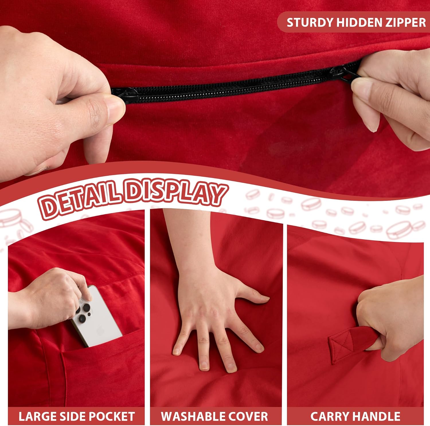 - Removable and Washable Cover: Our luxury velvet ultra-soft fur cover is removable and washable so you can always keep it clean and smelling fresh. If the bean bag chair cover is stained, you can simply zipper off the zipper easily and wash the chair cover.