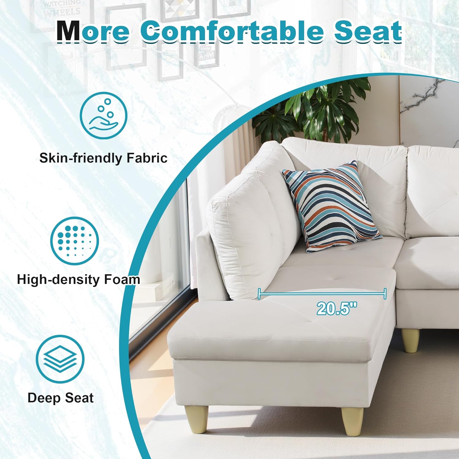 - Soft and Supportive Cushioning: Filled with high-density sponge, soft PP foam, and silk floss, the cushions of this sectional couch offer excellent elasticity and comfort. Whether you're relaxing on your couch after a long day or hosting guests, this sofa delivers the perfect balance of softness and support.