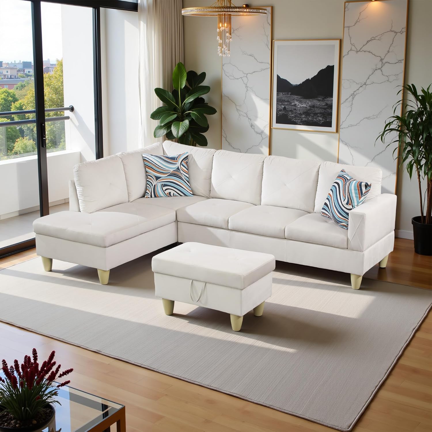 97" Oversized Sectional Couch, L Shaped Couch with Storage Ottoman, Modern Modular Sofa with Deep Seat, Sectional Couches for Living Room and Office, White (Flannel)