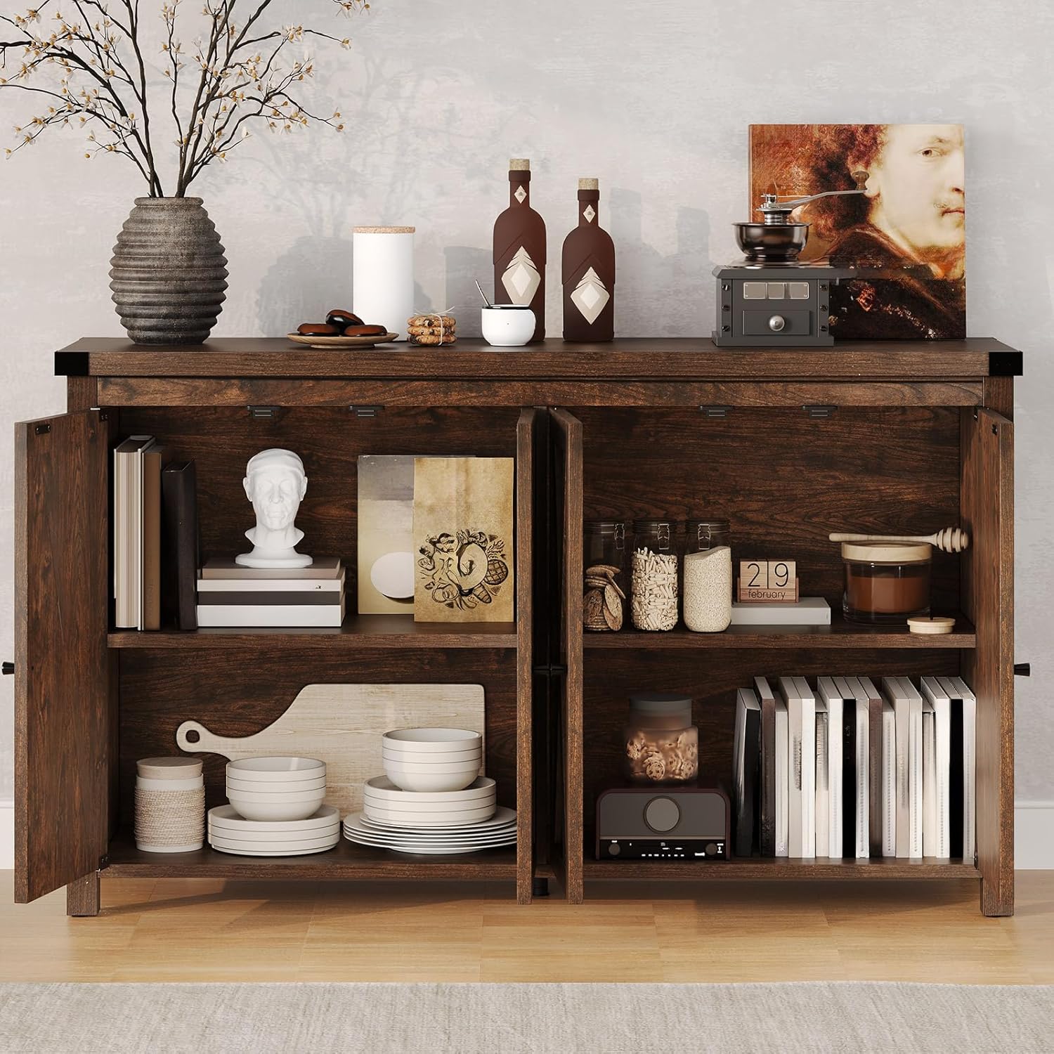 - Multi-functional Buffet Table: No need for a buffet cabinet? No problem! The accent cabinet also can be used as a coffee bar cabinet in the living room for coffee makers, as a TV stand or even a console table in the hallway to display family photos