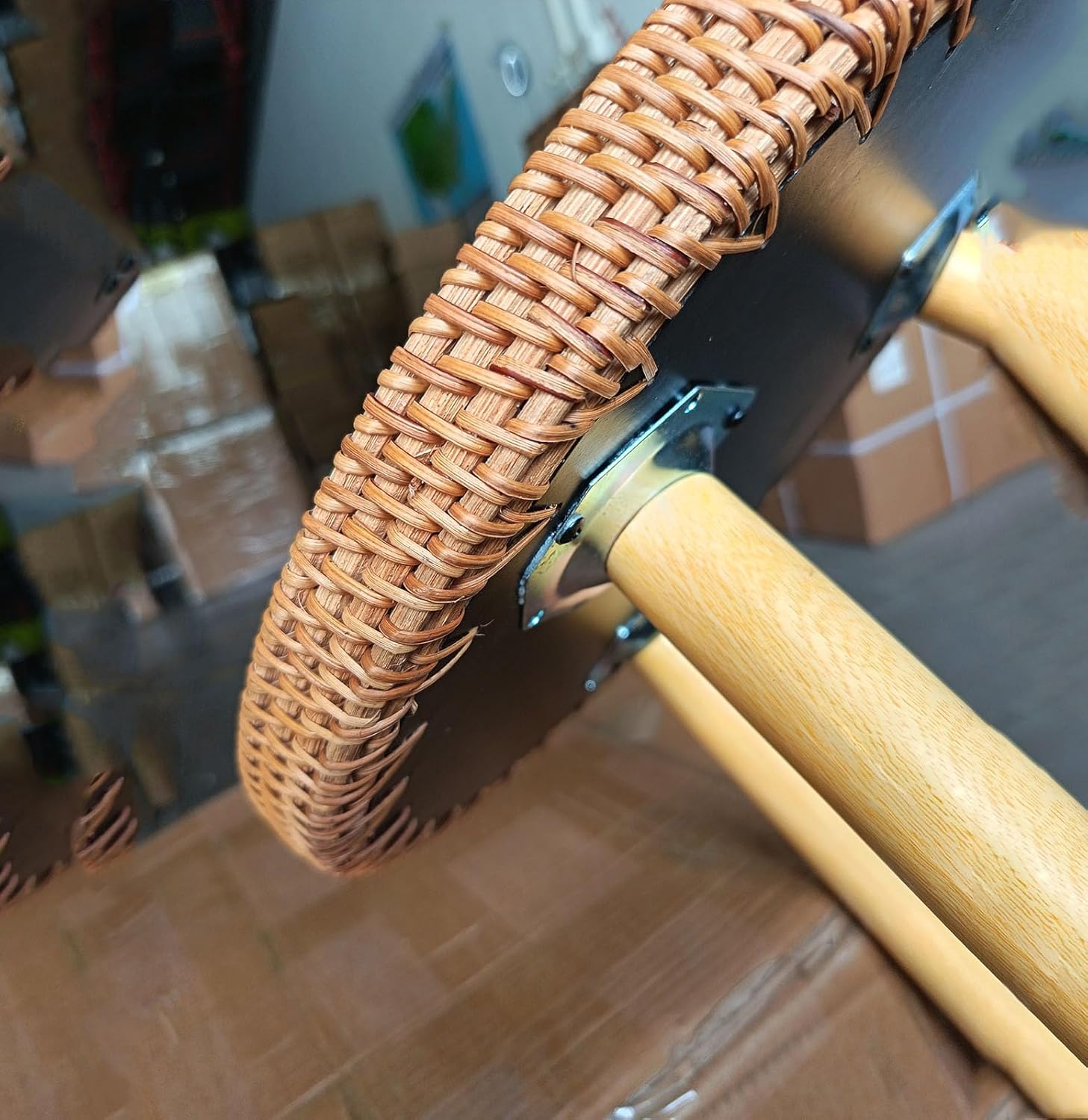 - 【Small Rattan Side Table】: Round Coffee Table has three wooden legs protected by beautiful sticker,Pallet edge protection design to prevent objects from falling.Vine edge+shell decoration desktop,overall design natural,fresh,rural retro style