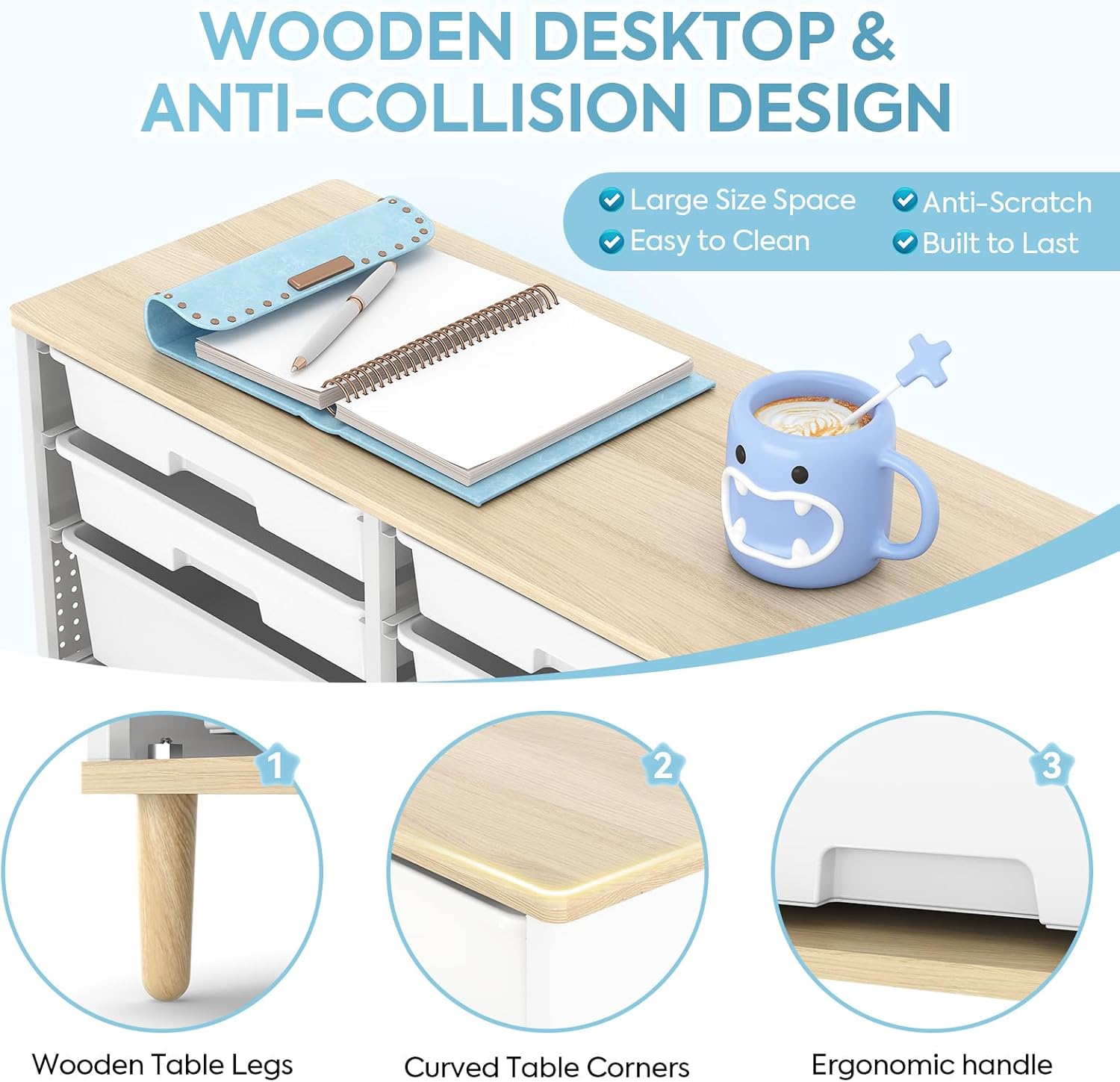 12-Drawer Storage Cabinet with Wooden Tabletop, Versatile Cube Storage Organizer Bin Storage for Home, Office, Playroom, Classroom & Craft Room Storage (White)