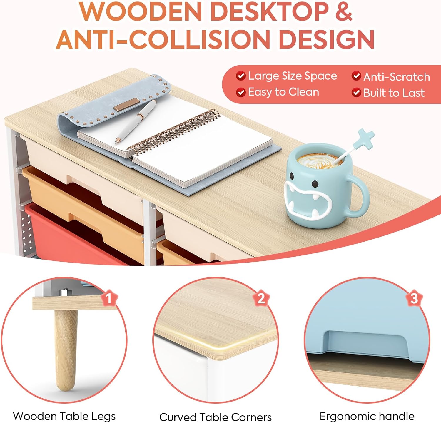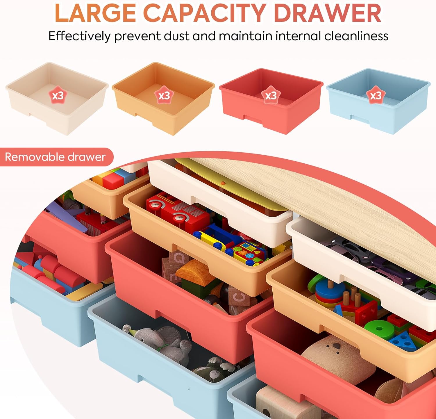 12-Drawer Storage Cabinet with Wooden Tabletop, Versatile Cube Storage Organizer Bin Storage for Home, Office, Playroom, Classroom & Craft Room Storage (Rainbow)