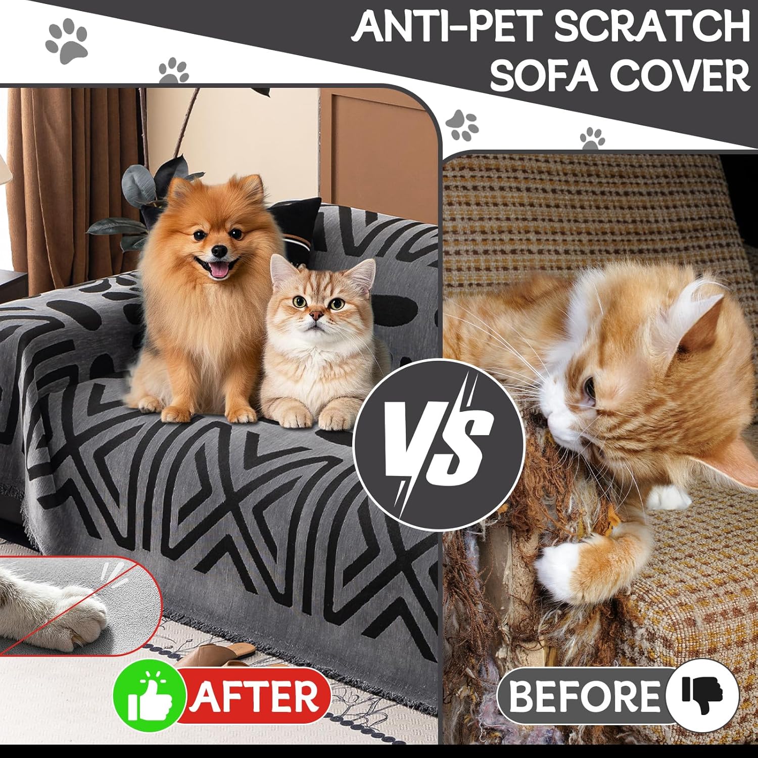 HANDONTIME Boho Couch Cover Blanket Geometric Striped Pet Covers for Couches and Sofas Dark Grey and Black Dog Cover for Couch Pet Friendly Chenille Sectional Sofa Covers for Pets Washable, 71" X150"