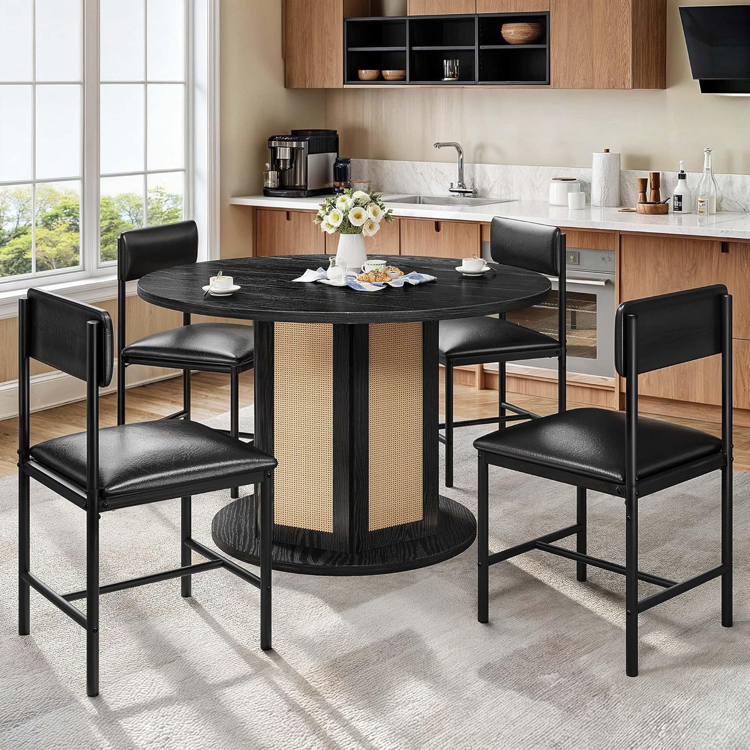 DWVO Dining Room Chairs Set of 4 Black Modern Upholstered Dining Chairs Faux Leather Restaurant Chairs with Metal Legs for Living Room Kitchen 4 Pack, Black
