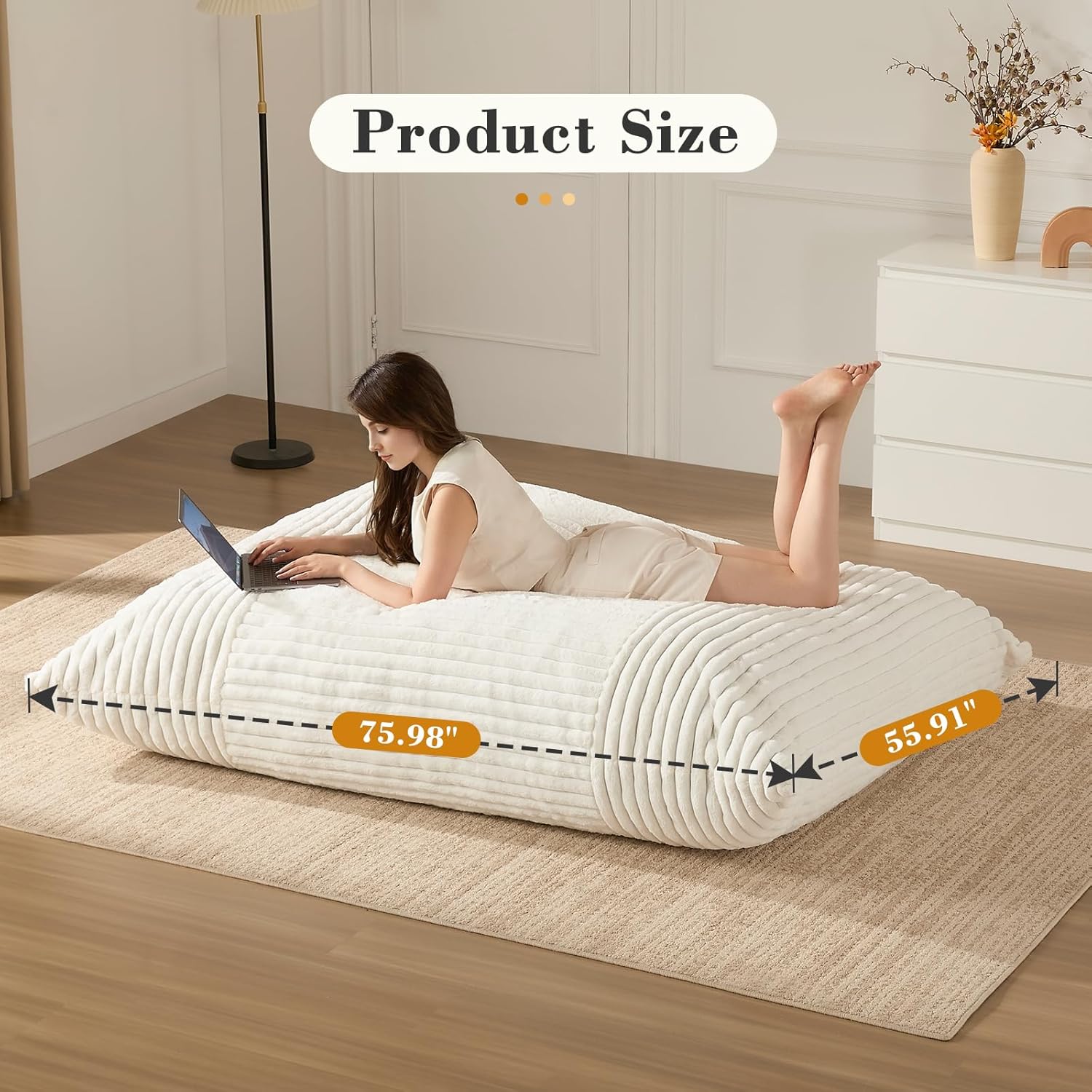 - 3-in-1 Convertible Design: Bean Bag Chair, Sofa, & Mattress Bed Versatile furniture for any space, Transform your giant bean bag chair into a floor sofa, or full size mattress bed. Perfect for apartments, dorms, or small living spaces, this multi functional bean bag adapts to your needs, whether you’re lounging, sleeping, or entertaining guests.