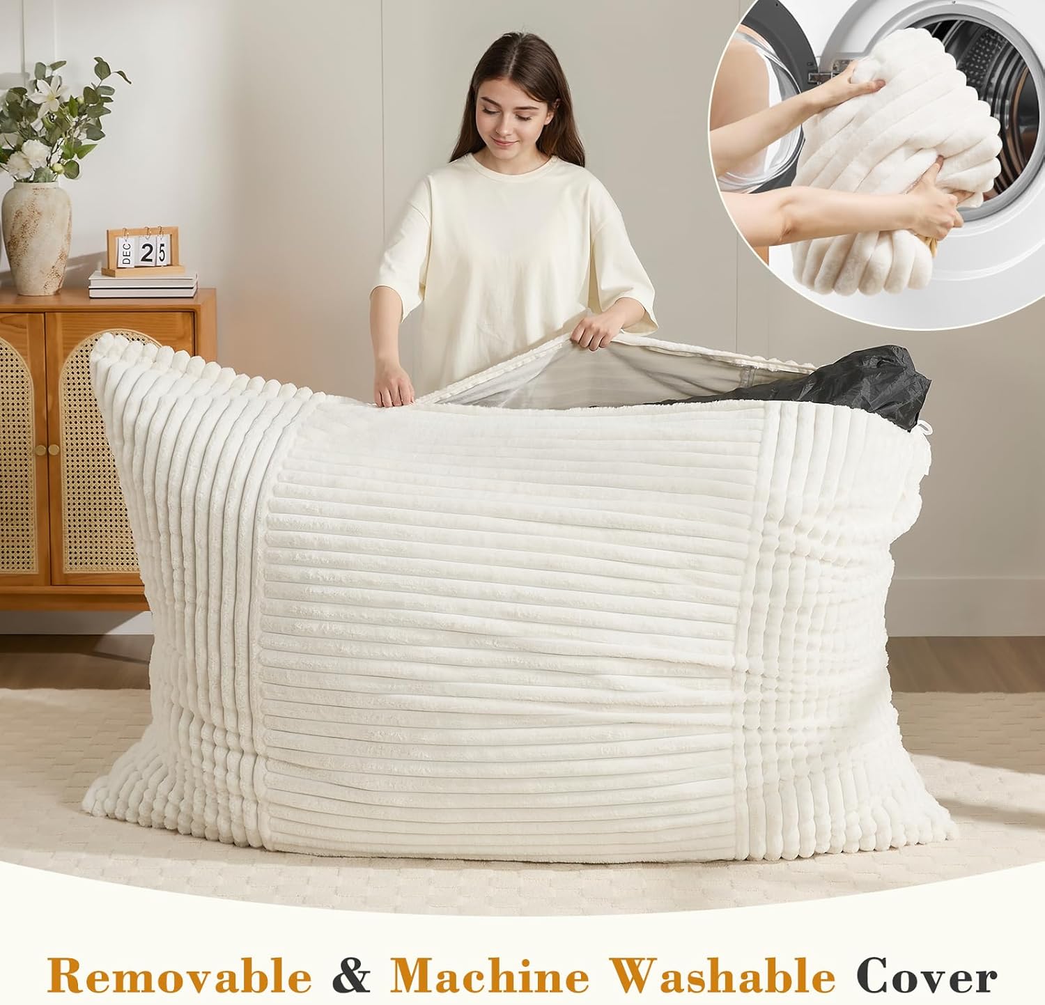 - Removable & Machine Washable Cover: Stay clean and comfortable with ease This giant bean bag chair cover is made of high quality 100% polyester, which is super soft, breathable and comfortable to touch. The outer cover is designed with hidden zipper for easy removal and it's machine washable. Toss it in the washing machine for hassle-free cleaning, ensuring your bean bag stays fresh and hygienic.