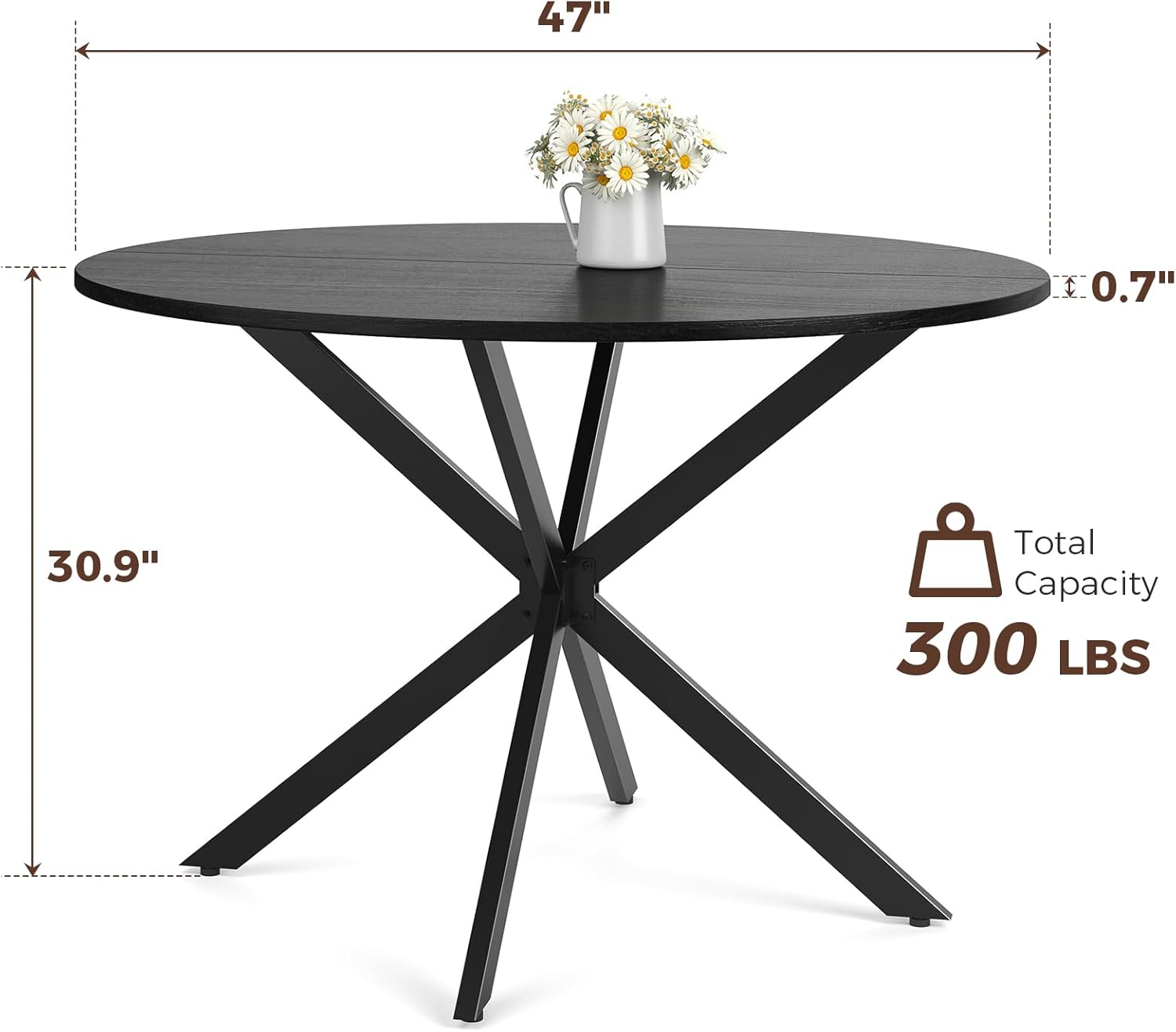 - 【Contemporary Simple Design】With circular forms, our small round dining table tends to break through straight lines, is composed of a black wood grain tabletop and an X-shaped frame, easily complements different room styles