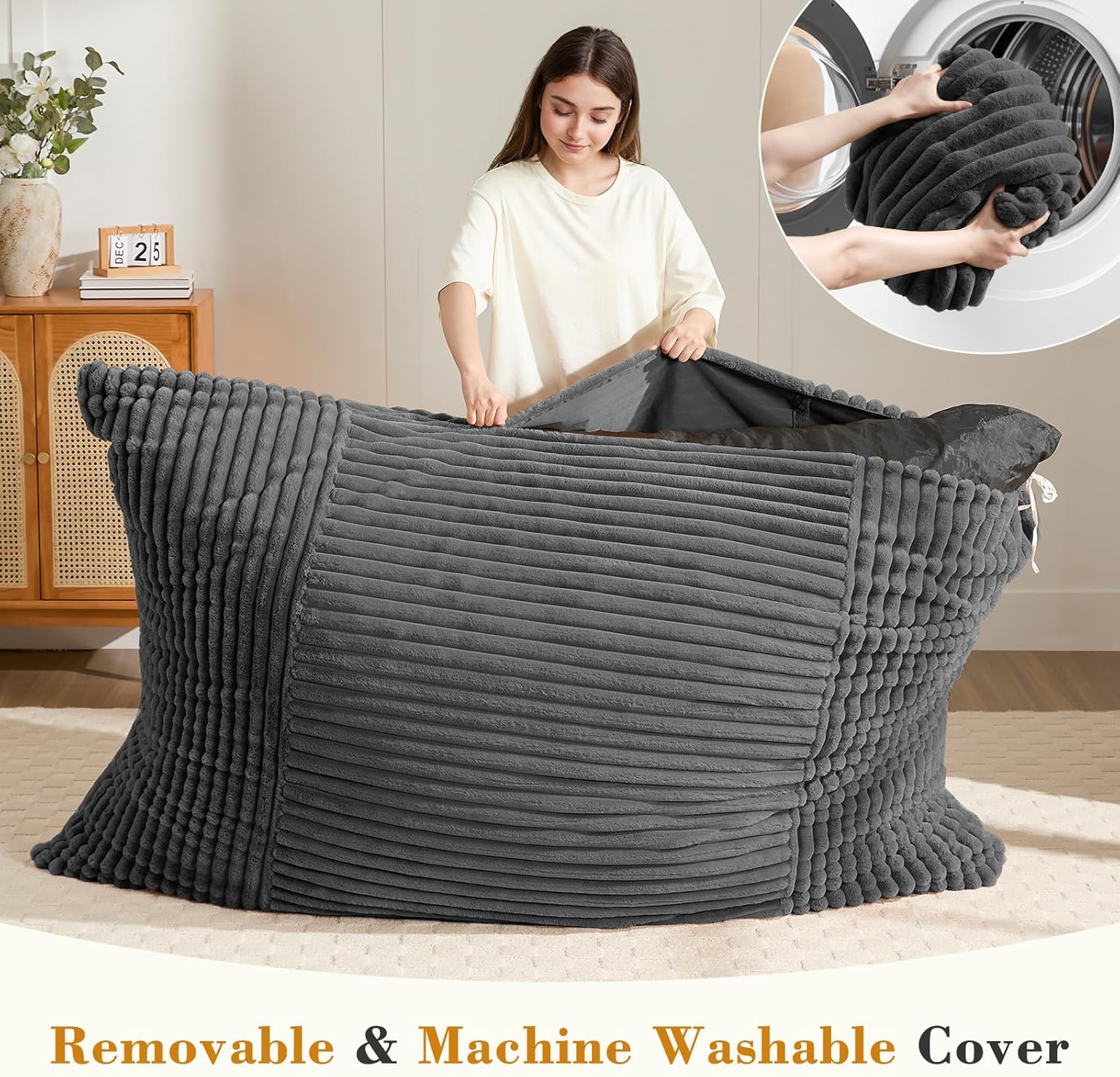 - Removable & Machine Washable Cover: Stay clean and comfortable with ease This giant bean bag chair cover is made of high quality 100% polyester, which is super soft, breathable and comfortable to touch. The outer cover is designed with hidden zipper for easy removal and it's machine washable. Toss it in the washing machine for hassle-free cleaning, ensuring your bean bag stays fresh and hygienic.