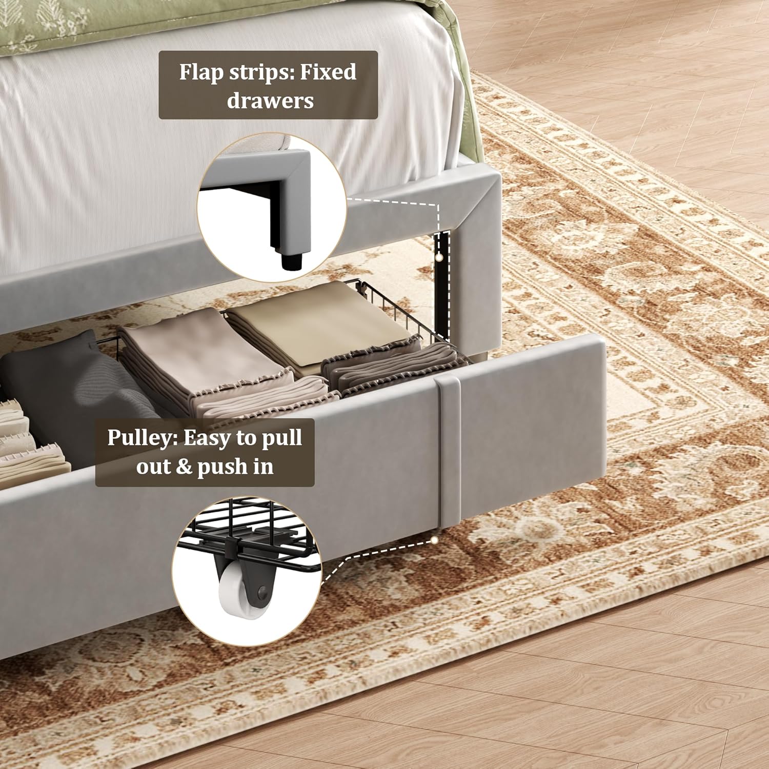 - LARGE STORAGE DRAWERS: King size bed frame with storage drawers maximize storage space in the bedroom, perfect for storing sheets, duvet covers, clothes, toys or other items, even in small rooms can have a wider space to move around, making your bedroom look neater and tidier