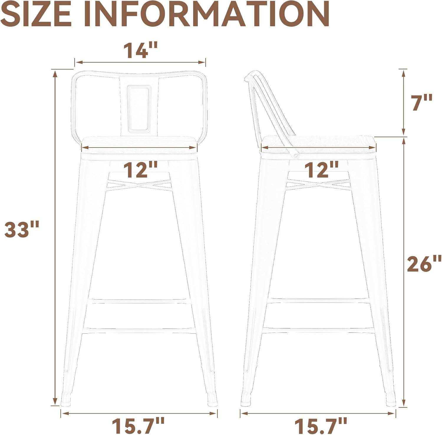Yongchuang 26 inch Bar Stools Set of 2 Kitchen Counter Height Chairs with Wood Seat Industrial Low Back Metal Barstools Cream White