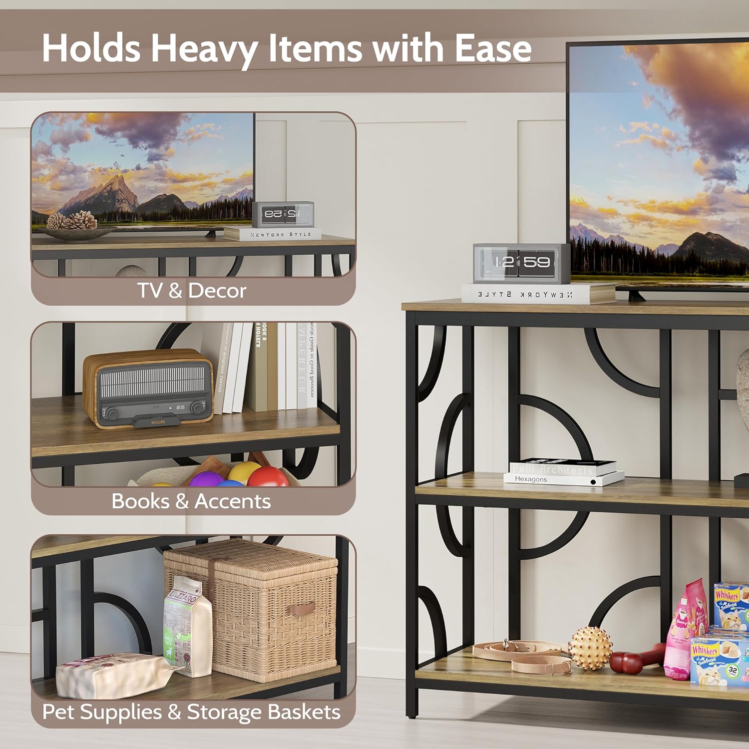 - 3-Tier Open Storage Shelves – Ideal for Books, Decorations, Plants, and Baskets; Keep Your Home Organized and Clutter-Free with Functional Display Space.