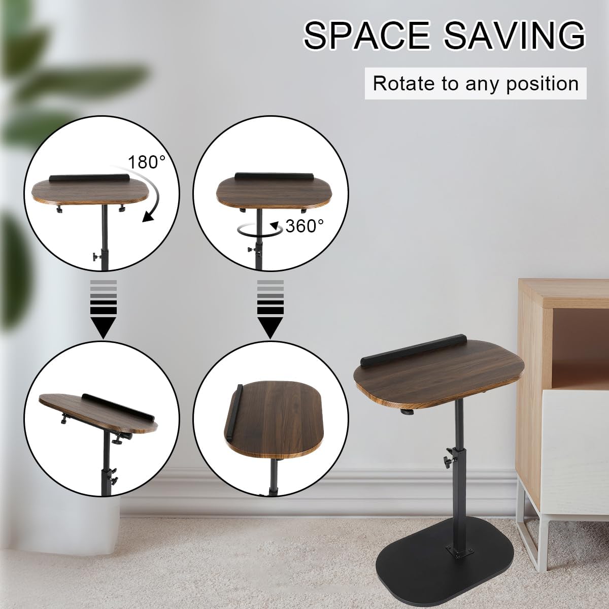 Comeon C-Shaped Tv Tray Pedestal Side Table, End Table Adjustable Height in Couch Living Room or Bedroomwith 360° Rotating Top for Small Spaces Bedside Night Stand Bedside Snack (Walnut)