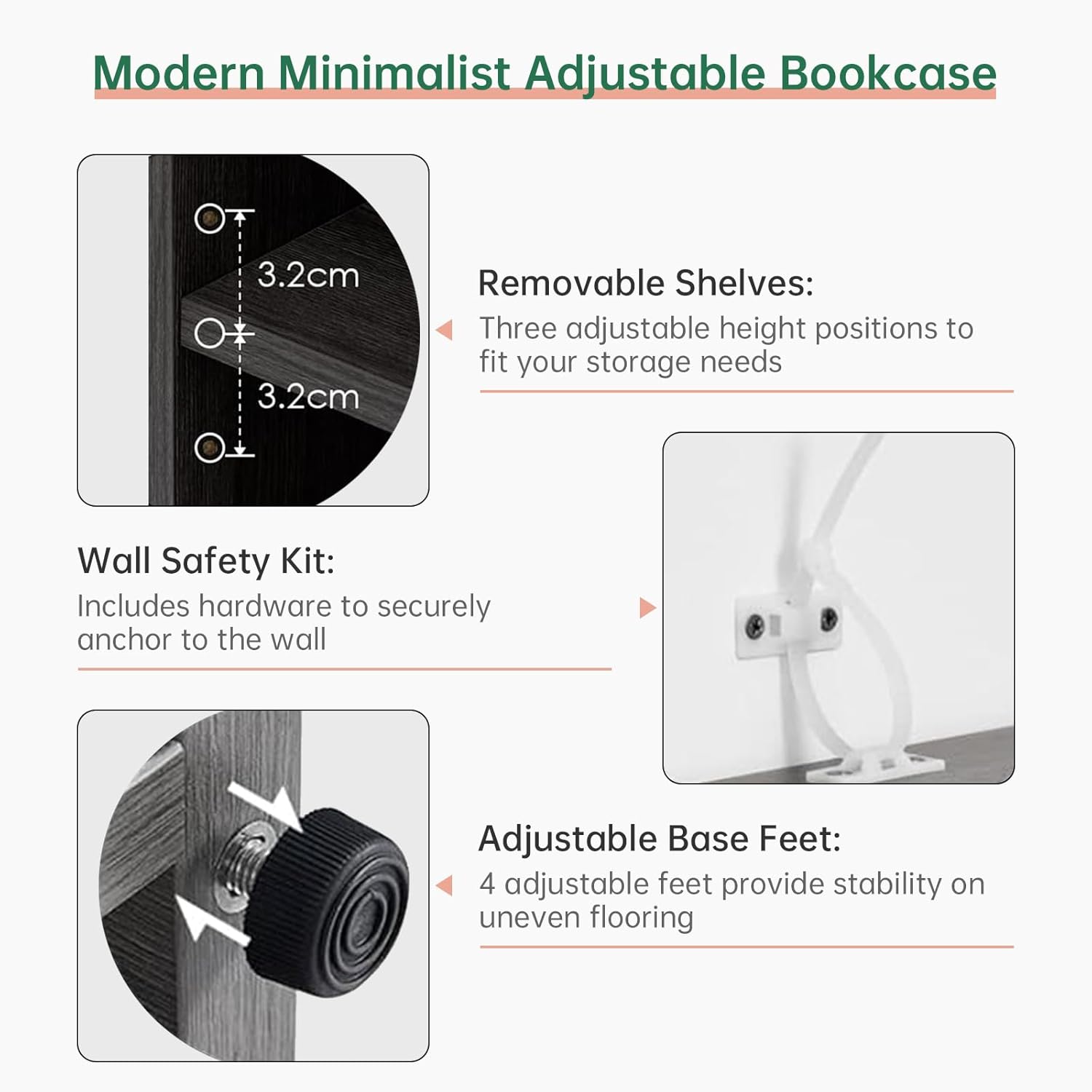 - [Sturdy and Safe Book Shelf] Built with reinforced hardware and a tip-over restraint kit, this freestanding bookcase ensures safety in homes with children or pets. Wall-anchored for stability, it offers secure storage in small spaces or high-traffic areas.